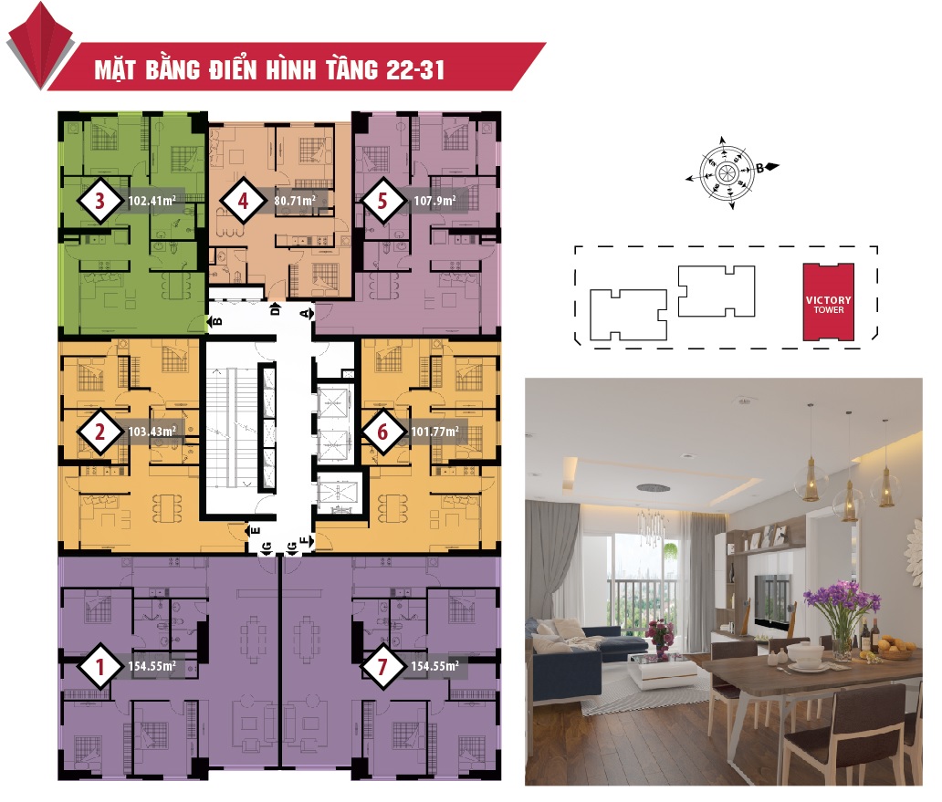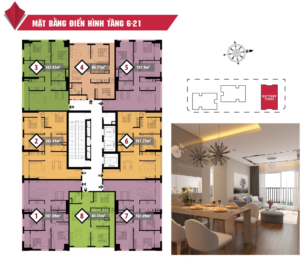 Quy mô: Gồm 03 tòa tháp: Elite Tower, Victory Tower, Happy Tower