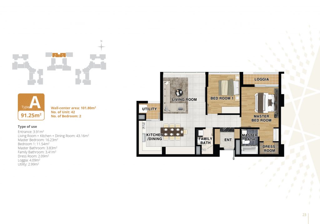 Quy mô: 24 tầng nổi và 2 tầng hầm.