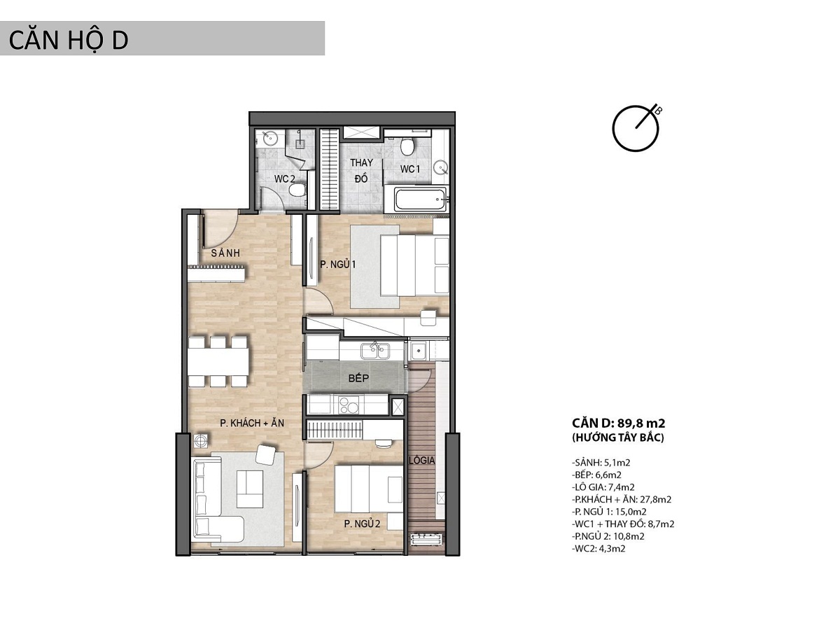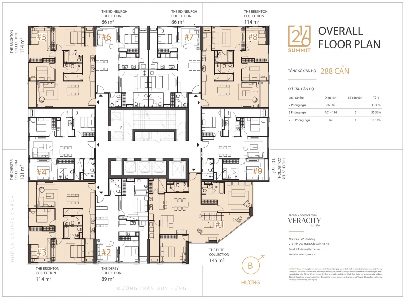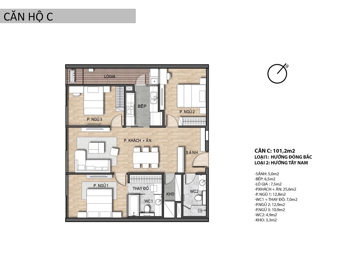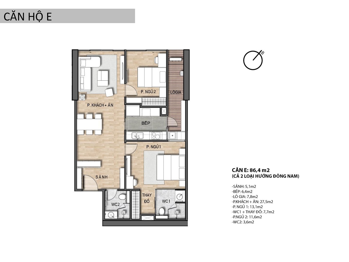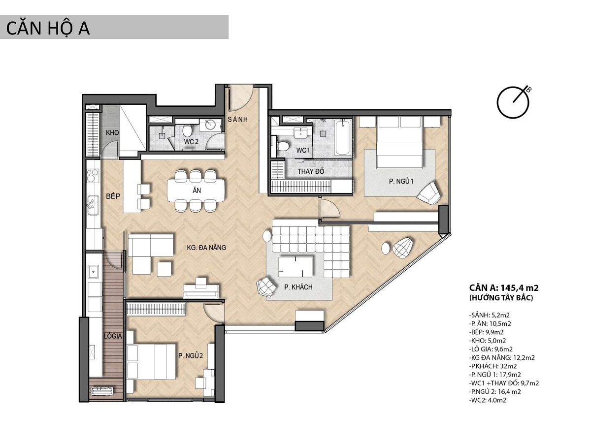 Diện tích căn hộ: từ 86,4 m2 đến 145,4 m2
