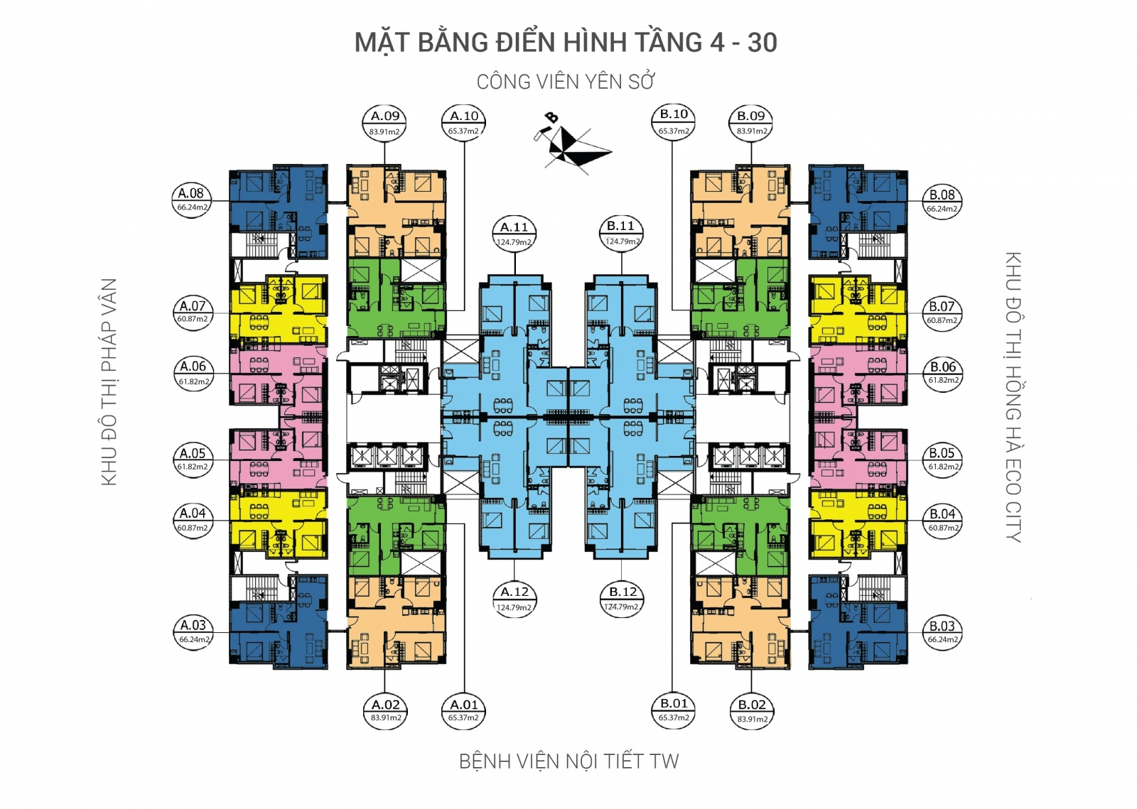 - Tầng 4-30 là căn hộ để bán; tầng 31 là tầng tum