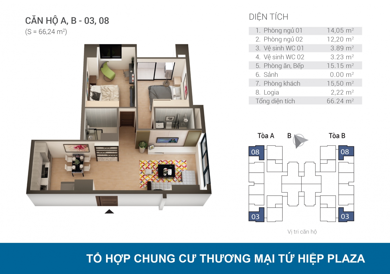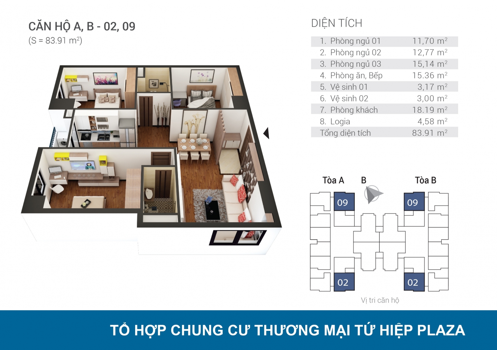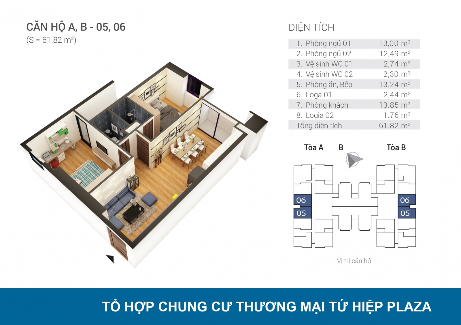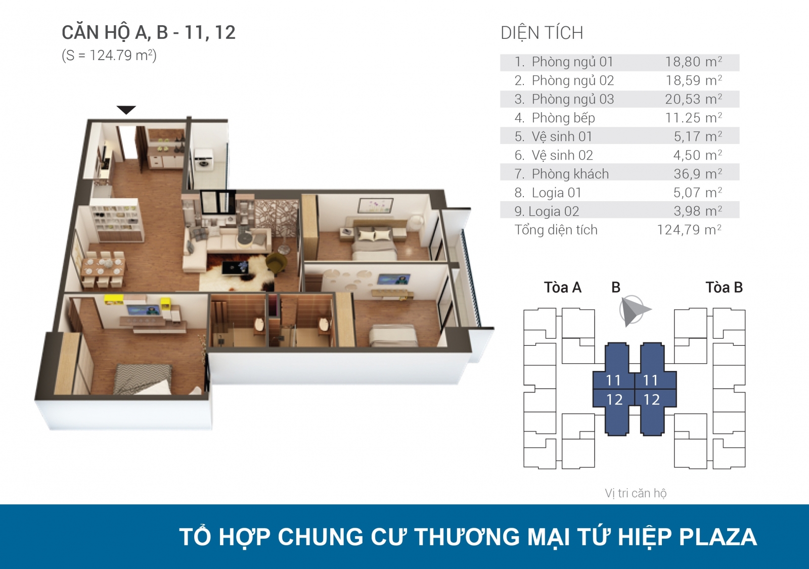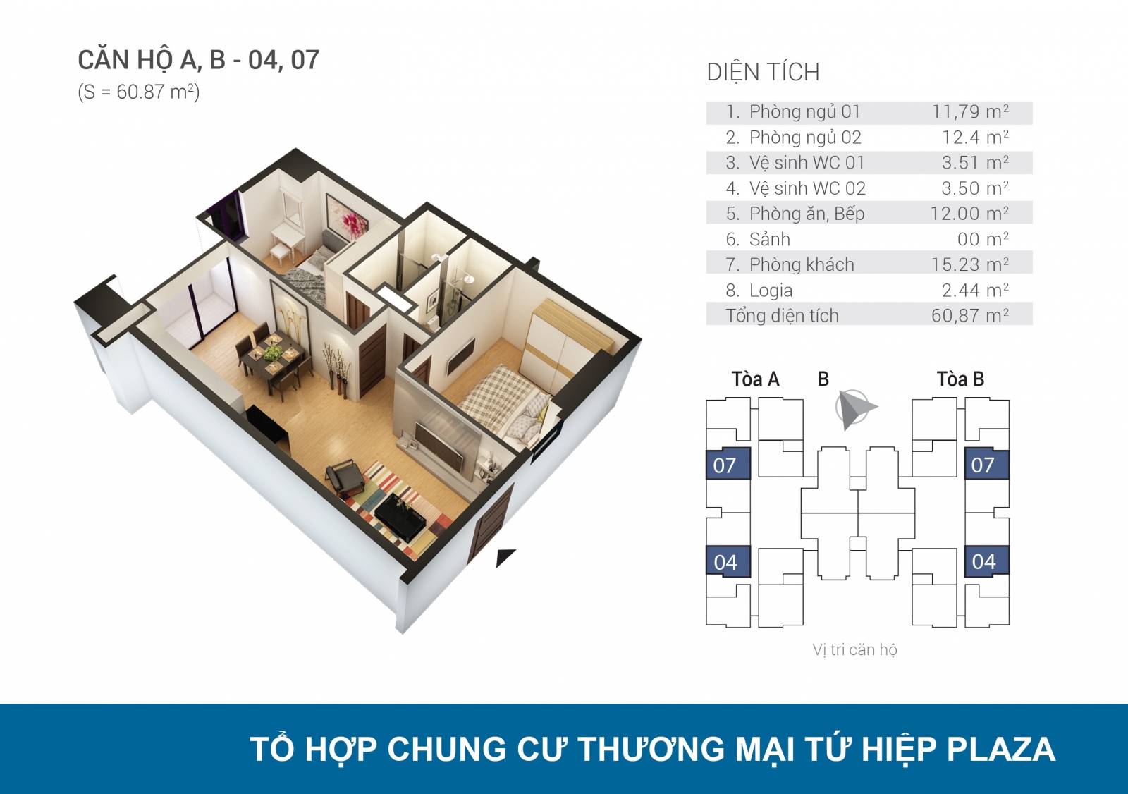 Lấy cảm hứng từ phong cách lịch lãm, trang nhã thân thiện với môi trường tự nhiên, các căn hộ tại Tứ Hiệp Plaza đều được bố trí hợp lý, tối ưu công năng sử dụng mang lại phong cách sống tiện nghi và thời thượng cho gia chủ. Các căn hộ Tứ Hiệp Plaza được thiết kế diện tích linh hoạt, bố trí 2 – 3 phòng ngủ đáp được nhu cầu đa dạng của khách hàng.