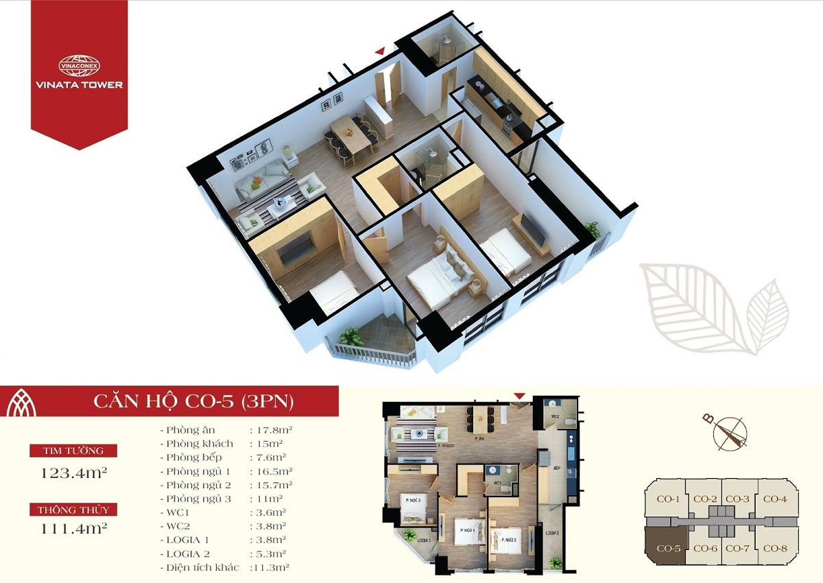 Lấy cảm hứng từ phong cách lịch lãm, trang nhã thân thiện với môi trường tự nhiên, các căn hộ tại Vinata Tower đều được bố trí hợp lý, tối ưu công năng sử dụng mang lại phong cách sống tiện nghi và thời thượng cho gia chủ. Các căn hộ Vinata Tower được thiết kế diện tích linh hoạt, bố trí 2 – 3 phòng ngủ đáp được nhu cầu đa dạng của khách hàng.
