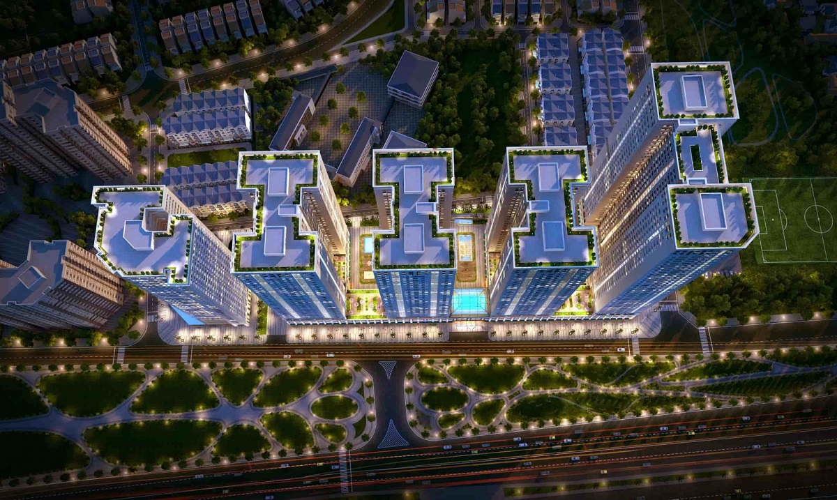 Quy mô: gồm 4 tòa nhà ở thương mại, 1 tòa nhà ở xã hội và 2 khu biệt thự song lập, tứ lập
