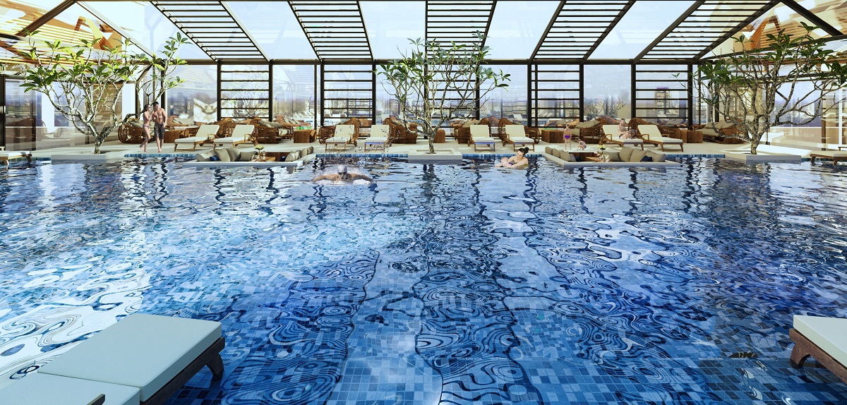 Bể bơi ngoài trời có mái được bố trí ngay tại tầng 4, là địa điểm lý tưởng cho các cư dân Eurowindow River Park rèn luyện sức khỏe, vui chơi và xả stress sau ngày làm việc, học tập căng thẳng. Bể bơi được giới chuyên môn thiết kế hiện đại, chuyên nghiệp, được thay nước thường xuyên, đảm bảo sự an toàn cũng như môi trường nước sạch cho cư dân thoải mái vui chơi. Sau những giờ làm việc căng thẳng, Bạn có thể tập luyện và chăm sóc sức khỏe và sắc đẹp toàn diện tại hệ thống Gym-Spa chất lượng cao được bố trí tại khu vực thông tầng trên tầng 4.