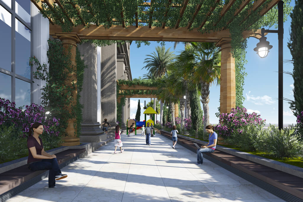 Cảnh quan của dự án là sự kết hợp hài hòa giữa các khoảng sân chơi, tuyến dạo và vòm cây xanh, vừa lấy bóng mát vừa tạo môi sinh trong lành cho dự án, Hệ thống tiện ích được tính toán đầu tư kỹ lưỡng với các dịch vụ ấn tượng đáp ứng nhu cầu mua sắm, giải trí và thư giãn của cư dân với các loại hình kinh doanh Shopping, Siêu thị tiện tích, dịch vụ Gym - Spa, và hệ thống nhà hàng Âu - Á kết hợp với những không gian Cafe in door - outdoor giải quyết sinh động các nhu cầu thưởng ngoạn của cộng đồng Sunshine Palace.