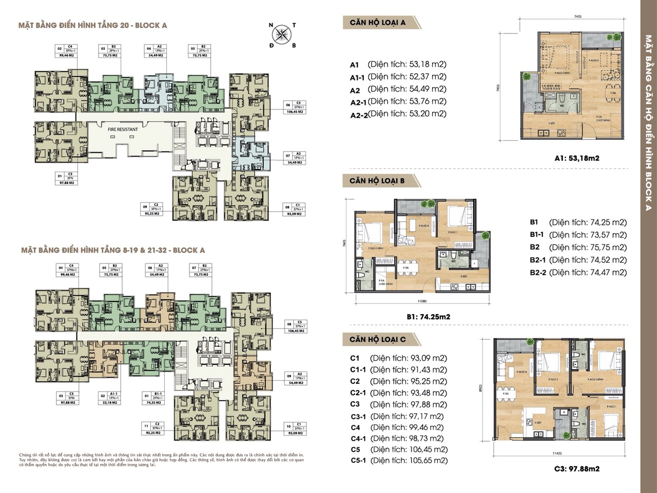 Diện tích căn hộ: Từ 44 – 136 m2 ( Từ 1 -4 Phòng ngủ)