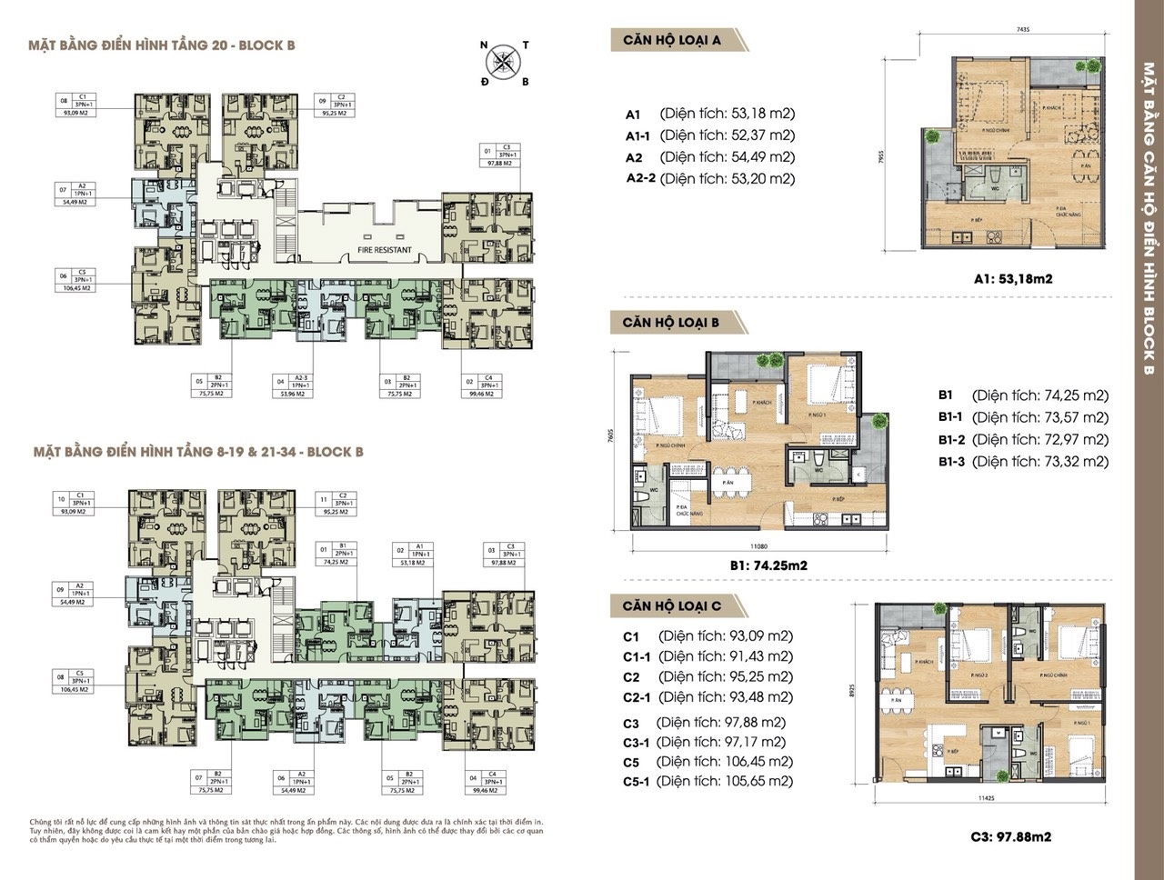 Quy mô: 3 tháp: 1 tầng hầm, 5 tầng đế và 35 tầng