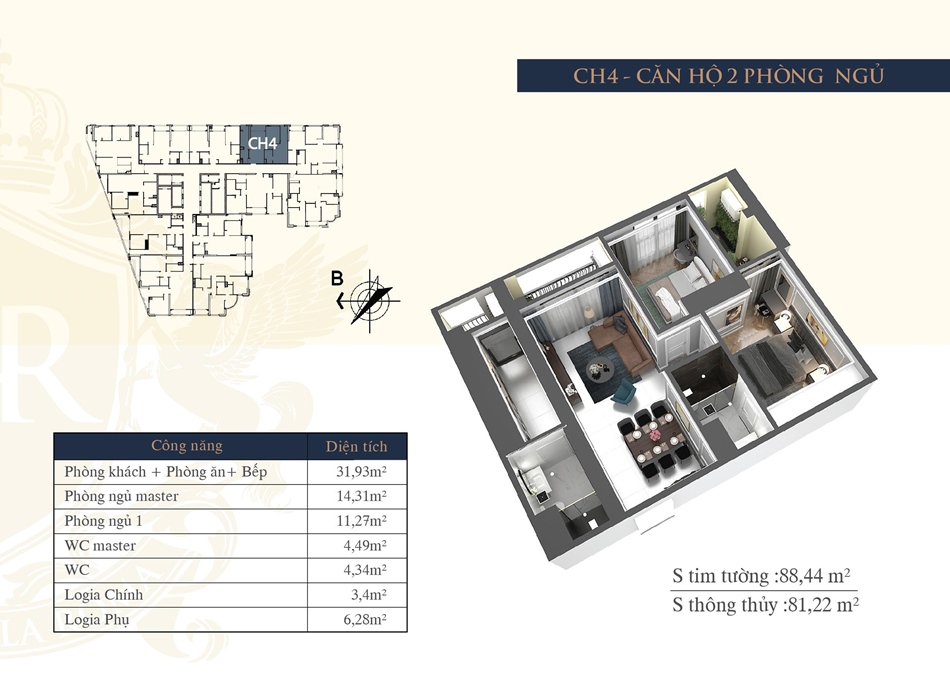 - Tầng 6 -39: Khối căn hộ ở được thiết kế với diện tích từ 62.8m2 - 128m2.