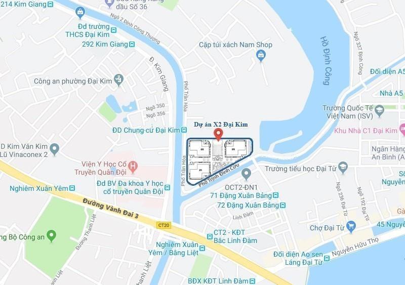 Dự án X2 Đại Kim là Nhà ở thương mại phục vụ tái định cư tọa lạc tại vị trí đắc địa ngay đường vành đai 3. Từ đây chỉ mất 9 phút để đi xe vào nội thành thông qua trục đường lớn giải phóng. Chung cư X2 Đại Kim nằm gần các khu đô thị lớn như Linh Đàm, Garmuda, Hateco Hoàng Mai, Ecogreen City và các trường đại học lớn như Đại Học Kinh Tế Quốc Dân, Đại Học Bách Khoa Hà Nội. Bệnh viện trung tâm như viện Nội Tiết, Việt Pháp..
