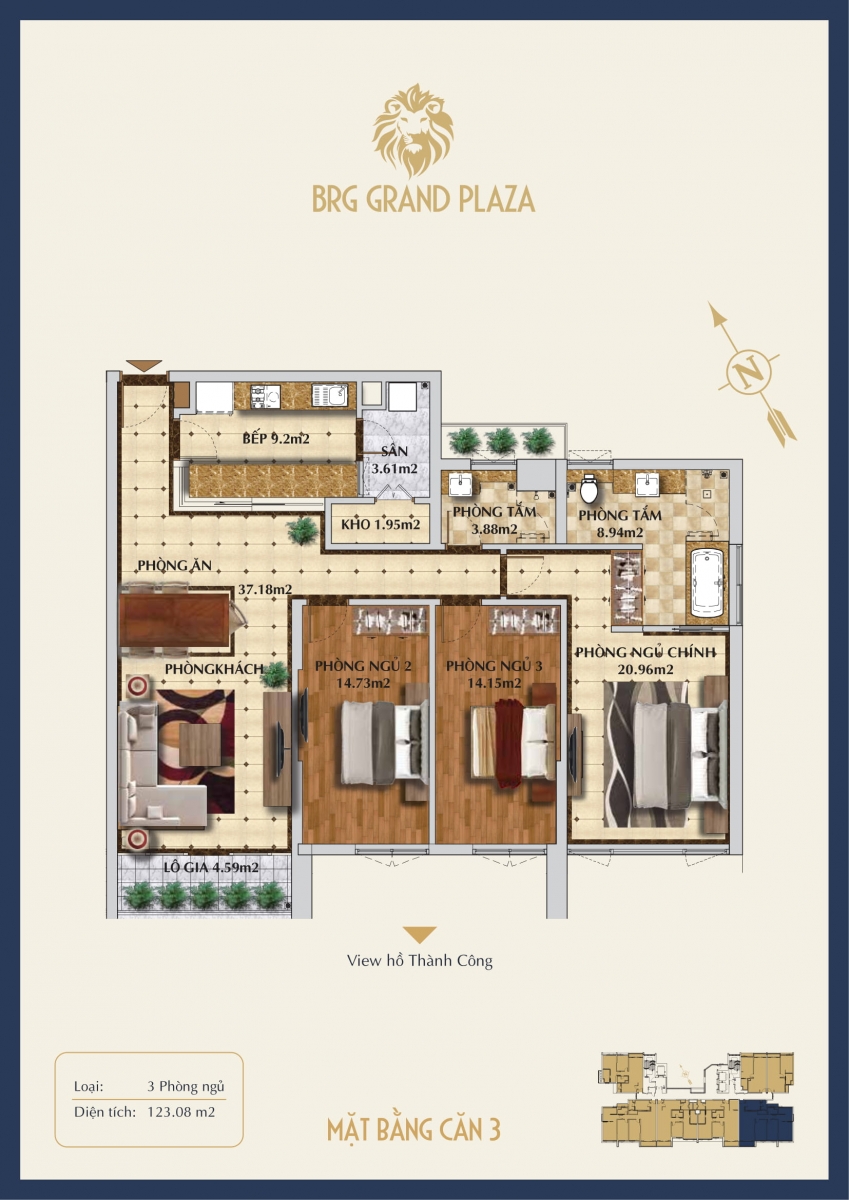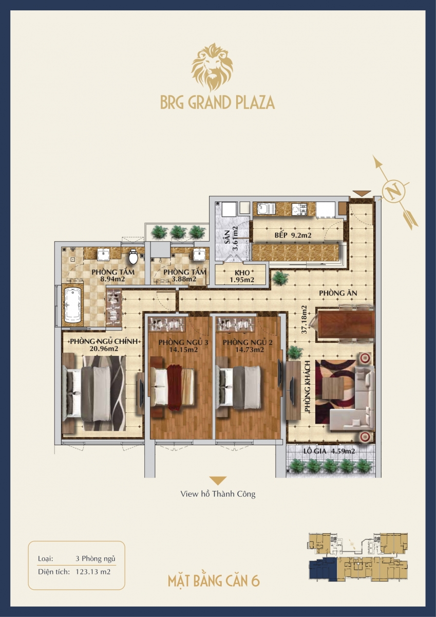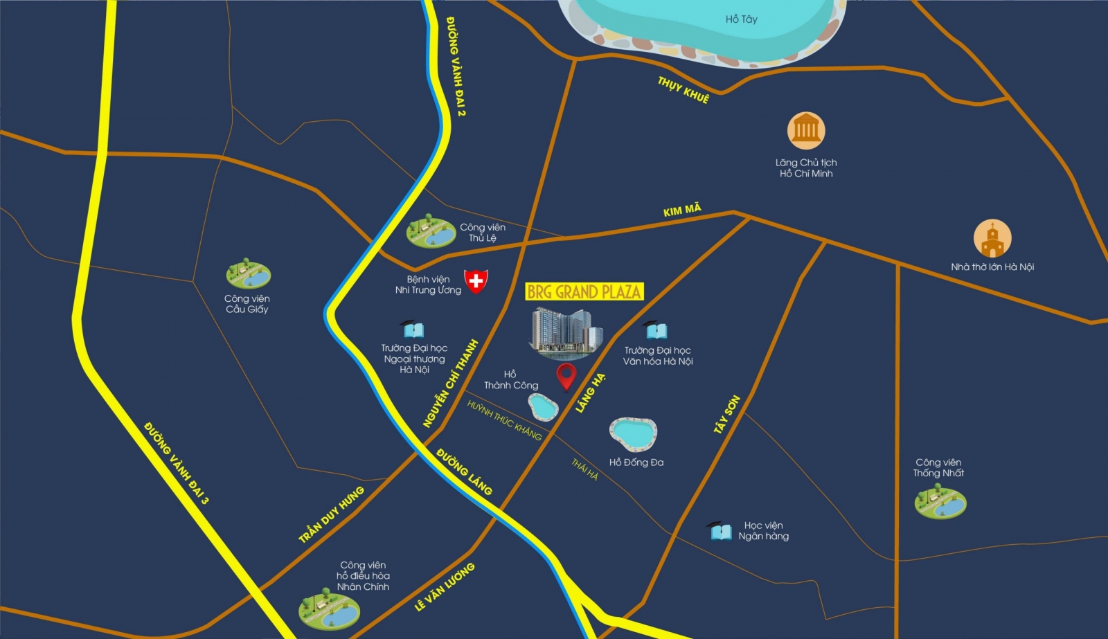 Ôm trọn hồ Thành Công là điểm nhấn tuyệt vời khiến khách hàng không thể bỏ qua BRG Grand Plaza. 70% các căn hộ đều view trực diện hồ và công viên tuyệt đẹp, đưa cư dân rời xa khỏi những hình ảnh phố thị đông đúc. Để mỗi khi trở về nhà sau một ngày vất vả, cư dân sẽ được thả hồn vào không gian xanh, mát tầm mắt để lấy lại năng lượng và cân bằng cuộc sống.