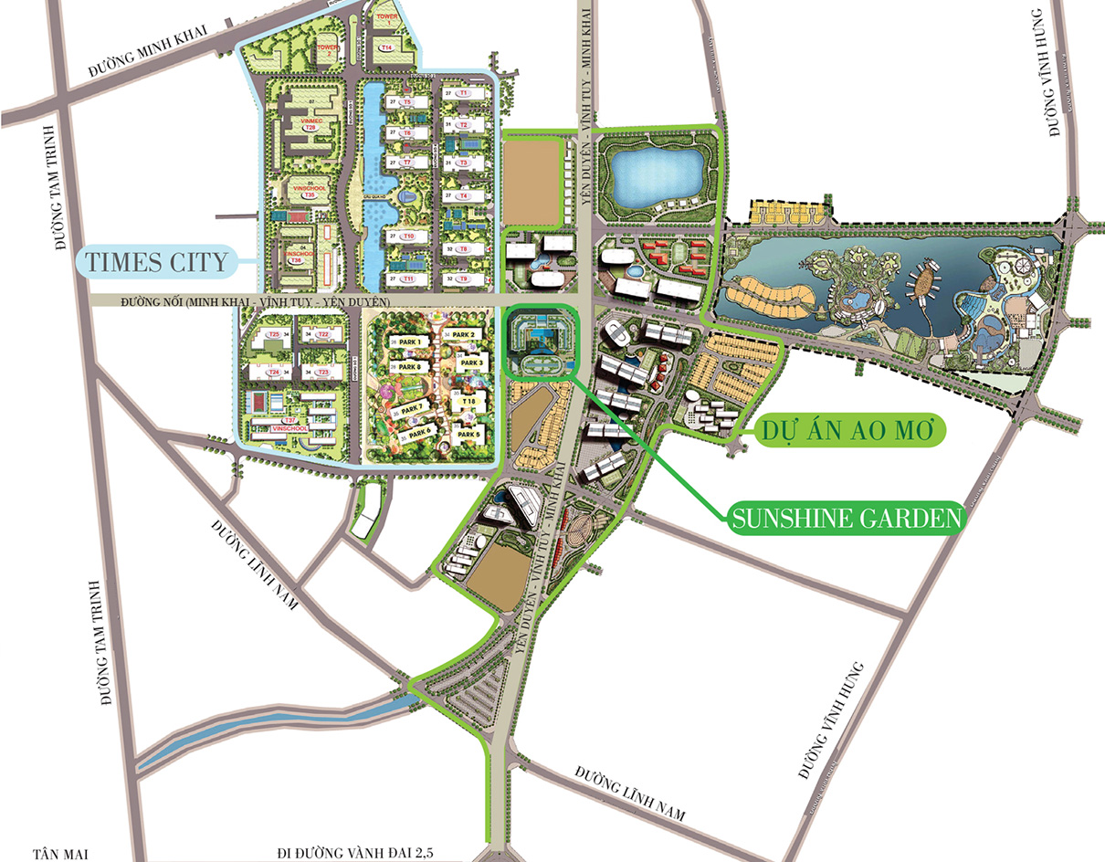 Tọa lạc ngay tại cửa ngõ phía Đông Nam Hà Nội, liền kề Park Hill - Times City và khu sinh thái Vĩnh Hưng, Sunshine Garden được thừa hưởng trọn vẹn các dịch vụ tiện ích đẳng cấp đã và đang hiện hữu. Dự án cũng có kết nối giao thông vô cùng đắc địa: Chỉ cách hồ Hoàn Kiếm khoảng 4km; tiệm cận tuyến đường vành đai 2 và tiếp giáp các trục đường đô thị huyết mạch của khu vực đã được Chính phủ và UBND thành phố phê duyệt chủ trương đầu tư xây dựng như trục đường Minh Khai - Vĩnh Tuy - Yên Duyên; tuyến đường nối thẳng từ Tam Trinh, xuyên qua KĐT Times City đến đến nút giao cắt giao thông của trục đường quan trọng trên.