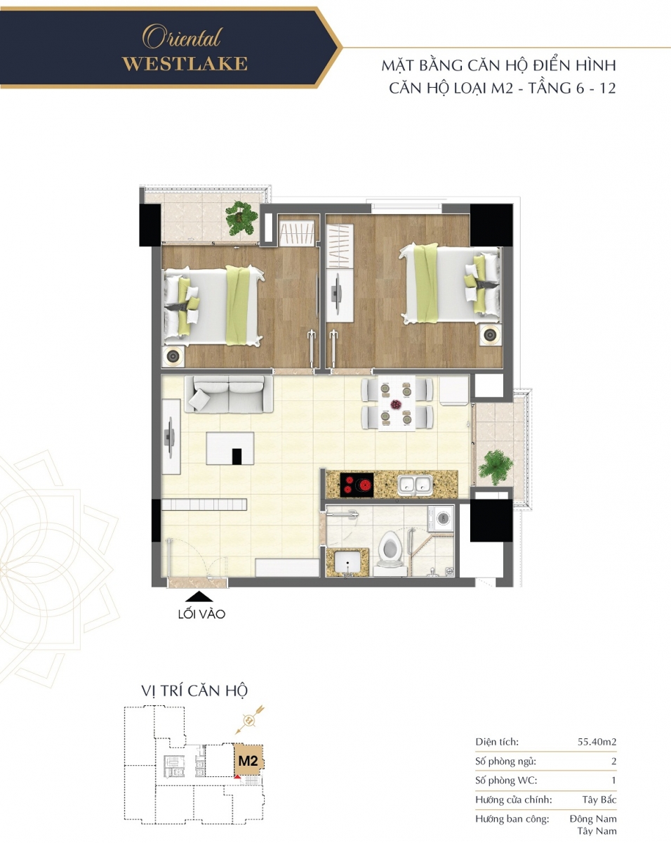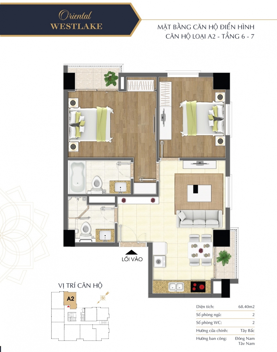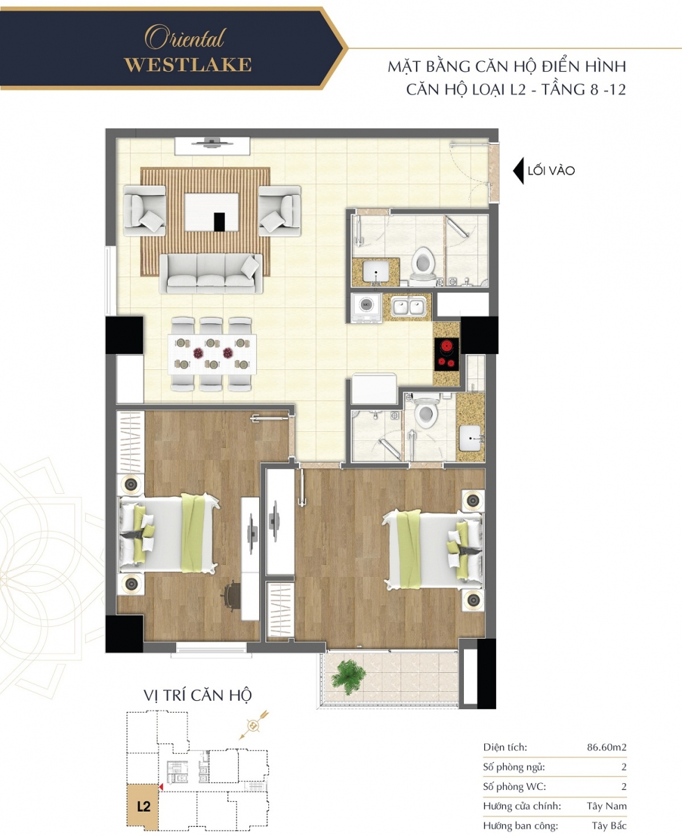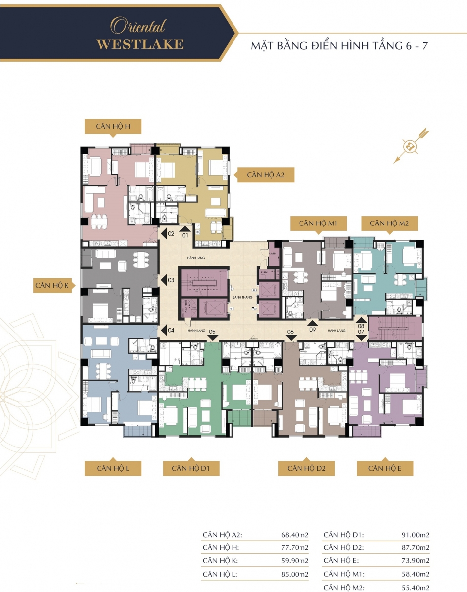 Lấy cảm hứng từ phong cách lịch lãm, trang nhã thân thiện với môi trường tự nhiên, các căn hộ tại Oriental Westlake đều được bố trí hợp lý, tối ưu công năng sử dụng mang lại phong cách sống tiện nghi và thời thượng cho gia chủ. Các căn hộ Oriental Westlake được thiết kế diện tích linh hoạt, bố trí 2 – 3 phòng ngủ đáp được nhu cầu đa dạng của khách hàng.