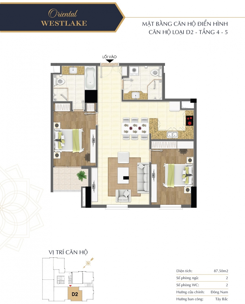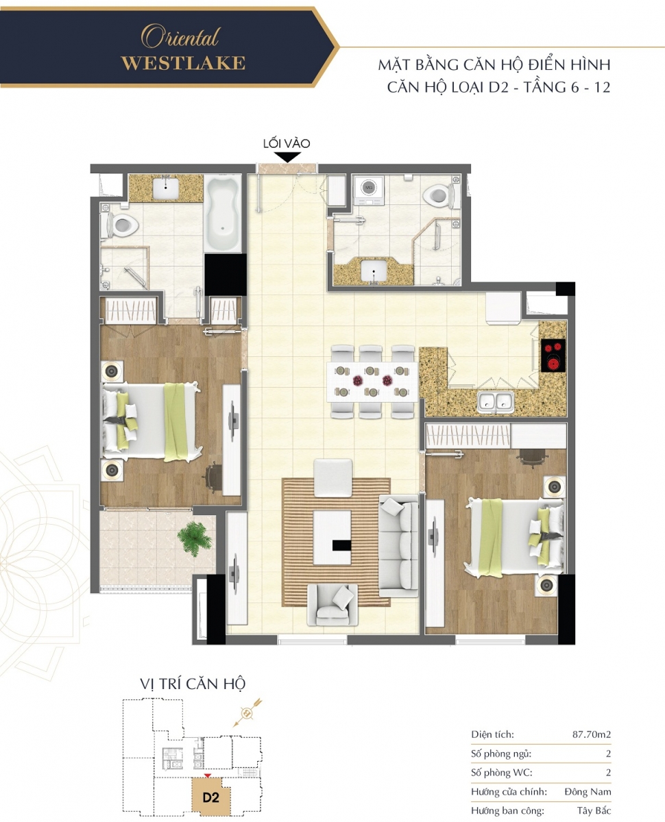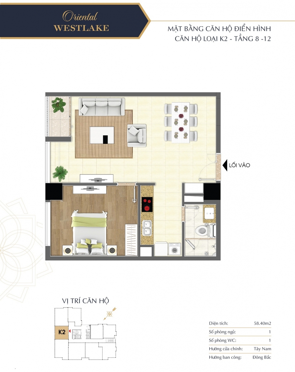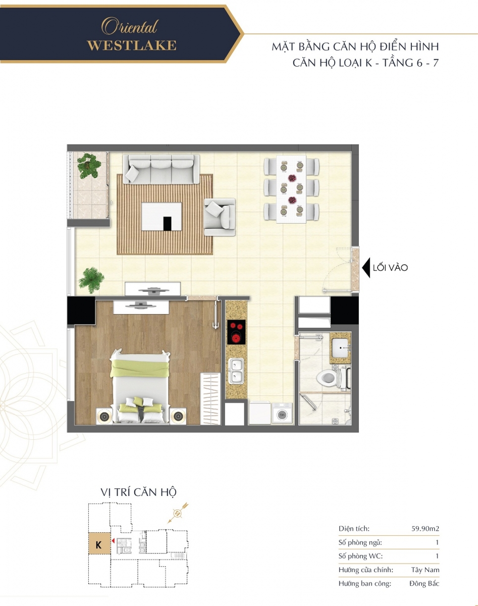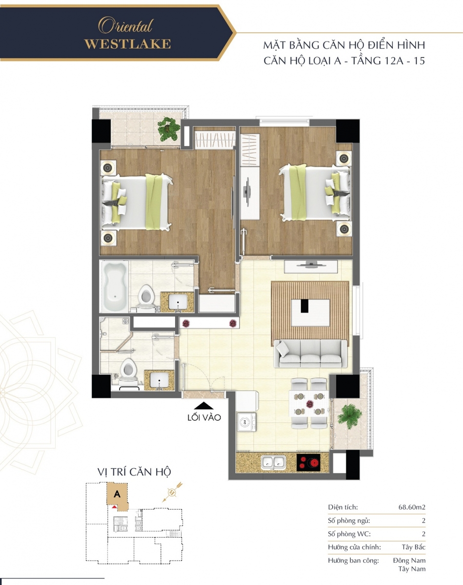 Lấy cảm hứng từ phong cách lịch lãm, trang nhã thân thiện với môi trường tự nhiên, các căn hộ tại Oriental Westlake đều được bố trí hợp lý, tối ưu công năng sử dụng mang lại phong cách sống tiện nghi và thời thượng cho gia chủ. Các căn hộ Oriental Westlake được thiết kế diện tích linh hoạt, bố trí 2 – 3 phòng ngủ đáp được nhu cầu đa dạng của khách hàng.