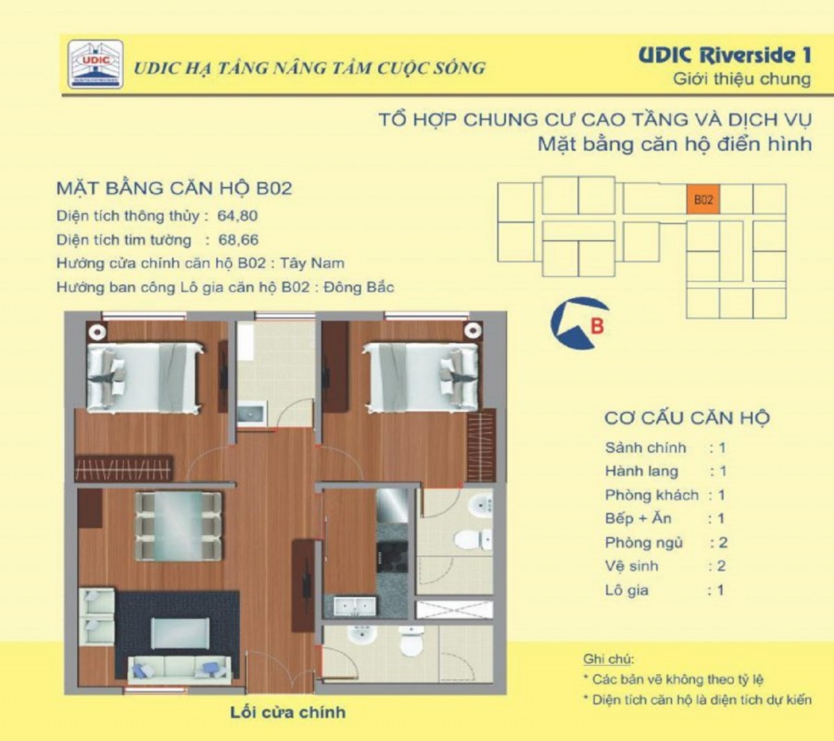 Lấy cảm hứng từ phong cách lịch lãm, trang nhã thân thiện với môi trường tự nhiên, các căn hộ tại Udic Riverside đều được bố trí hợp lý, tối ưu công năng sử dụng mang lại phong cách sống tiện nghi và thời thượng cho gia chủ. Các căn hộ Udic Riverside được thiết kế diện tích linh hoạt, bố trí 2 – 3 phòng ngủ đáp được nhu cầu đa dạng của khách hàng.