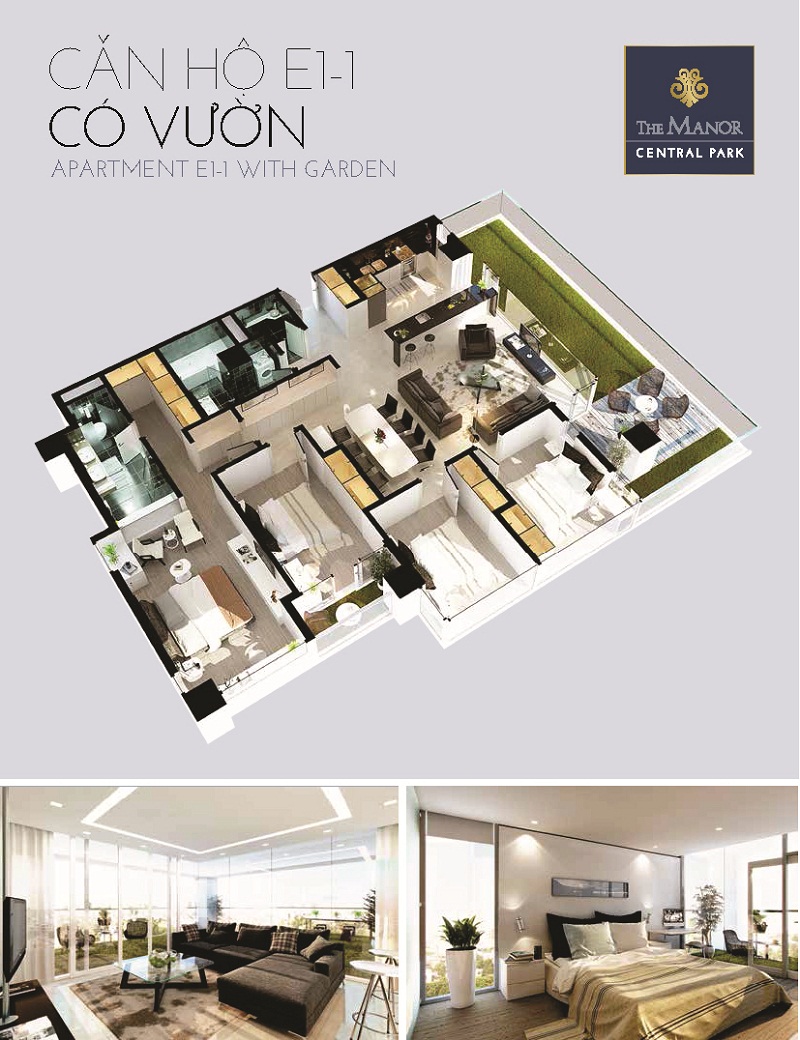 Chung cư The Manor Central Park dự kiến gồm 18 tòa cao ốc với gần 7000 căn hộ từ căn hộ. Từ căn hộ Studio đến các căn hộ Penthouse từ 1 phòng ngủ đến 5 phòng ngủ với các diện tích từ 43m2 đến gần 300m2. Thiết kế các căn hộ hoàn toàn một không gian XANH. Mở cửa ra bạn đón nhận hơi thở của đô thị nằm xen lẫn giữa công viên cây xanh ngập tràn.