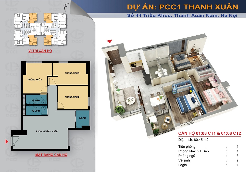 Tọa lạc tại số 44 Triều Khúc, dự án PCC1 Thanh Xuân tiếp giáp với nhiều tuyến đường lớn, trục đường giao thông huyết mạch của Hà Nội như Nguyễn Trãi, Khuất Duy Tiến, vành đai 3…Từ đây, cư dân không chỉ dễ dàng tiếp cận với khu vực trung tâm thành phố, các điểm trọng yếu của thủ đô mà còn di chuyển thuận tiện đến một số tỉnh khu vực phía Bắc như Hải Dương, Hưng Yên, Quảng Ninh, Bắc Ninh…thông qua đường vành đai 3.