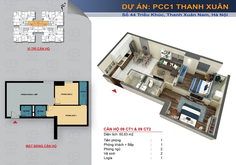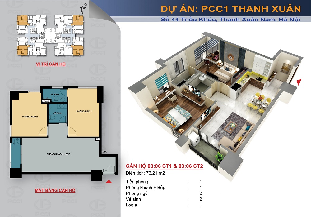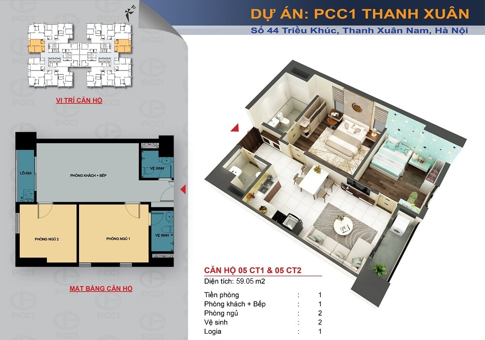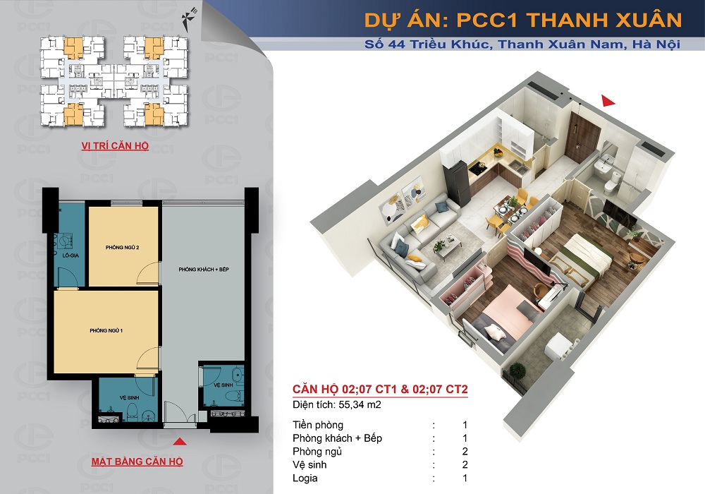 Với diện tích hợp lý từ 55,28 – 80,45m2, bố trí từ 2 – 3 phòng ngủ, dự án PCC1 Thanh Xuân được kỳ vọng trở thành điểm dừng chân lý tưởng của các gia đình trẻ và gia đình hai thế hệ.