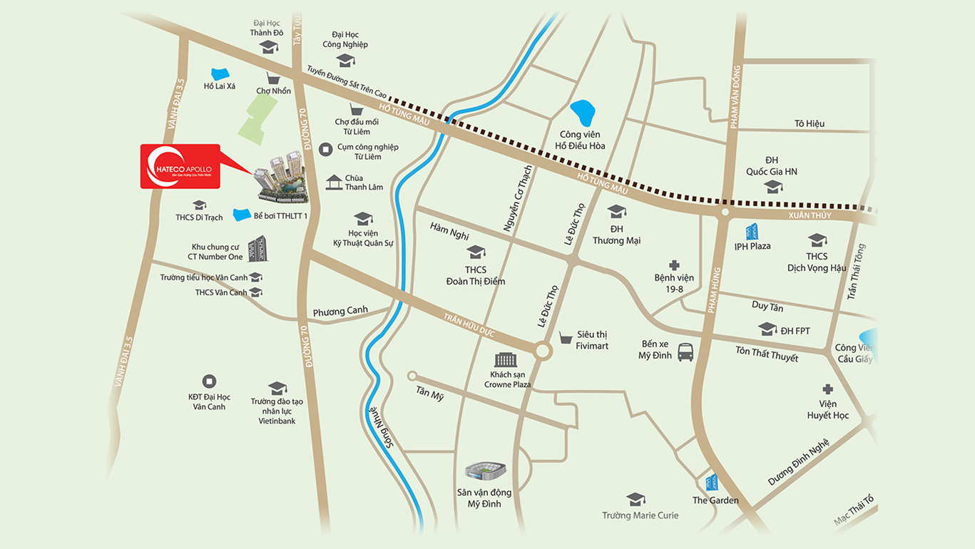 Dự án chung cư Hateco Xuân Phương được xây dựng tại khu vực đang được thủ đô chú trọng đầu tư phát triển về hệ thống cơ sở hạ tầng với nhiều tuyến đường trọng điểm như quốc lộ 70, Trần Hữu Dực kéo dài,…