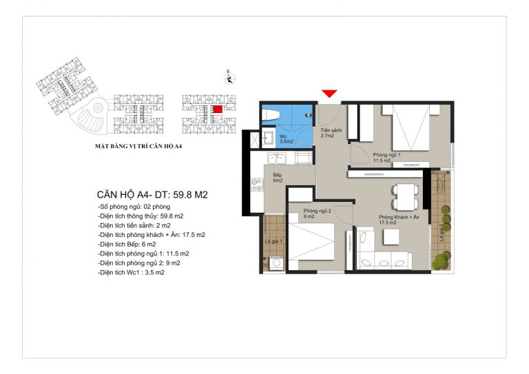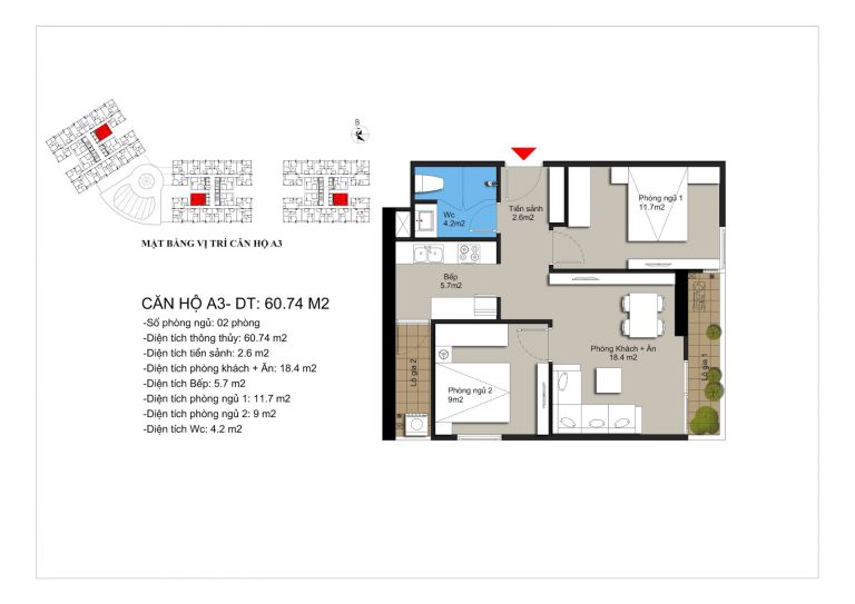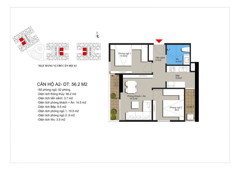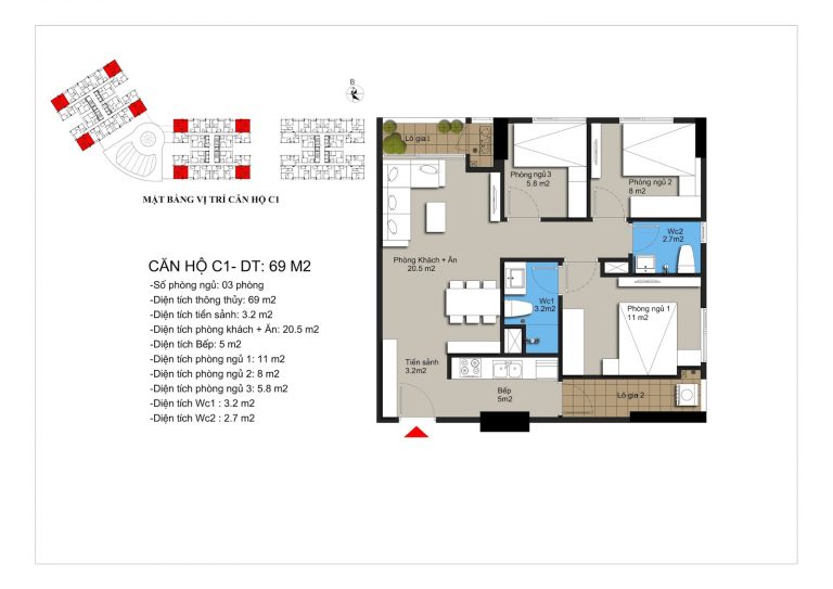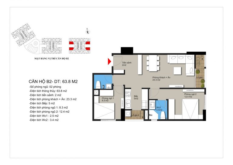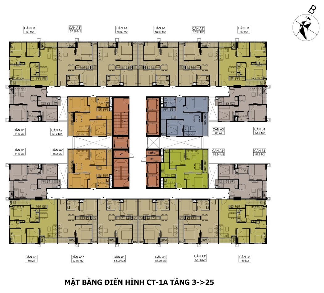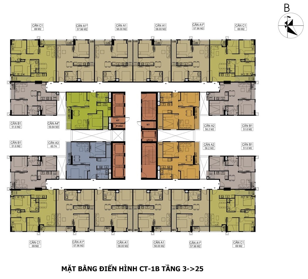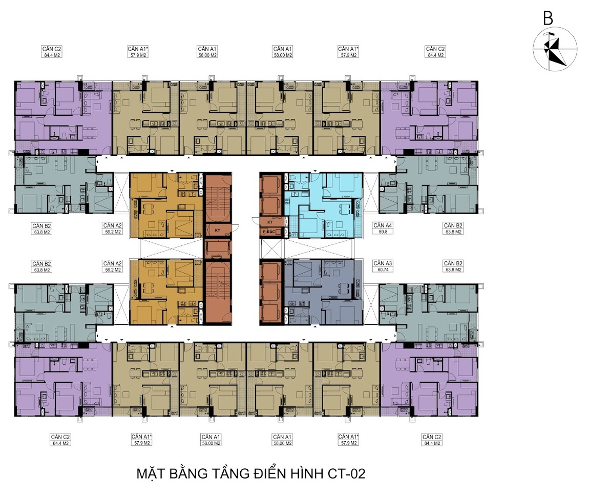 Thiết kế mặt bằng căn hộ Hateco Xuân Phương với diện tích của tòa CT1 từ 51.6m2 đến 69 m2 và tòa CT2 là 56.2m2 đến 84.4 m2. Các căn hộ dự án được tối ưu công năng sử dụng trong từng phòng, mỗi căn đều có 2 logia giúp đón ánh sáng và nắng tự nhiên