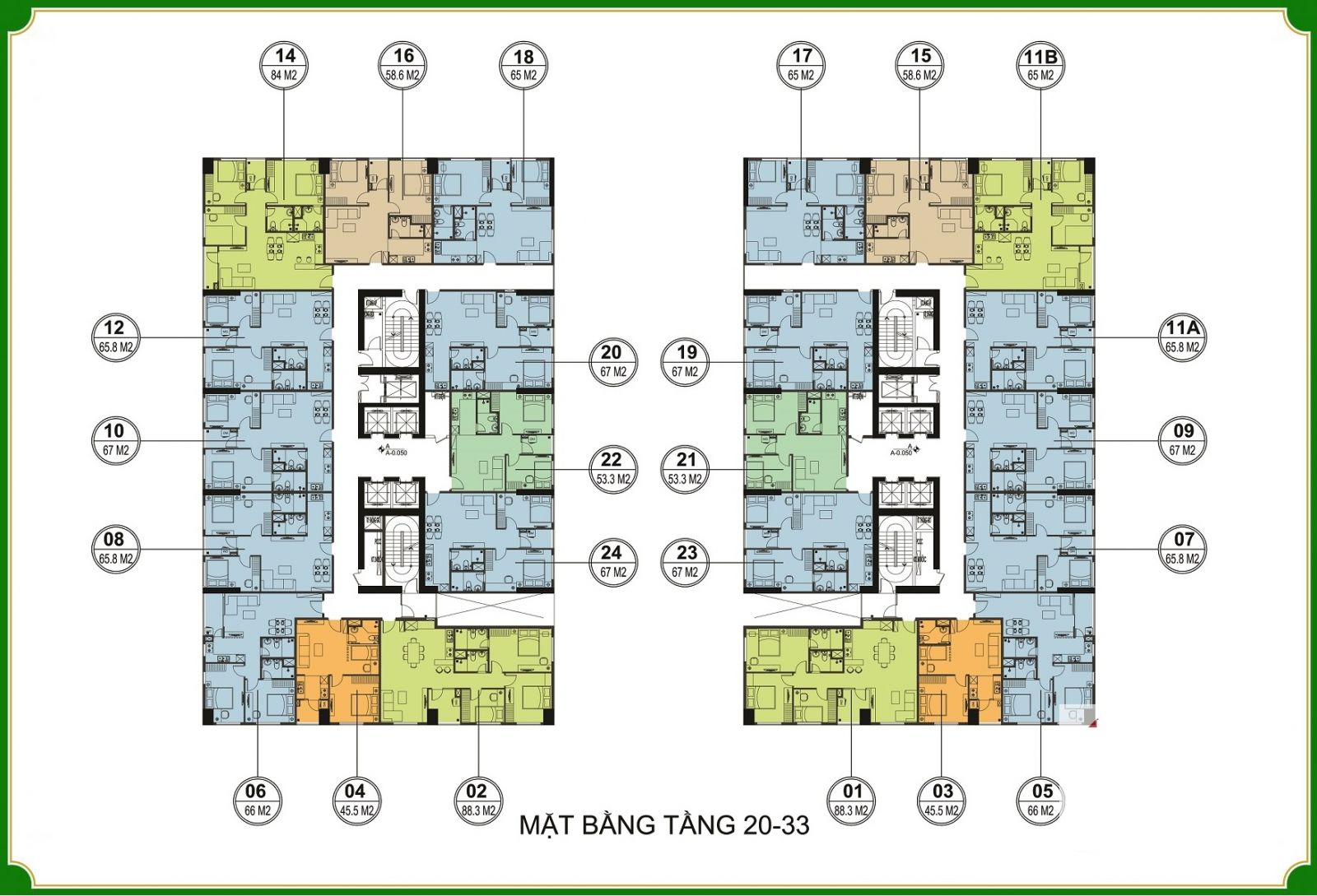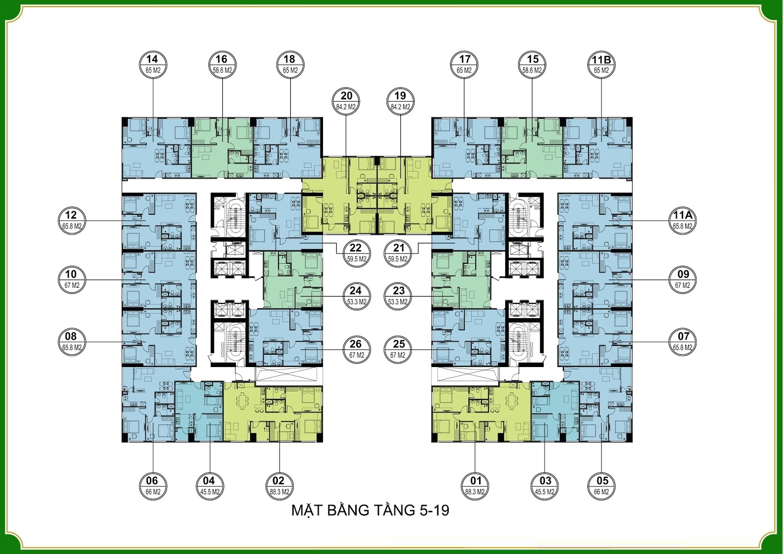 - Diện tích cụ thể: 49m2 - 53m2 - 55m2 - 64m2 - 67m2