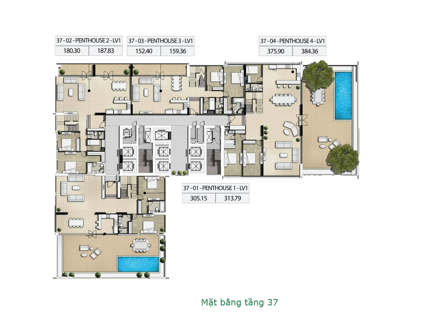 - Tầng 3 đến tầng 38 là tầng căn hộ cao cấp.