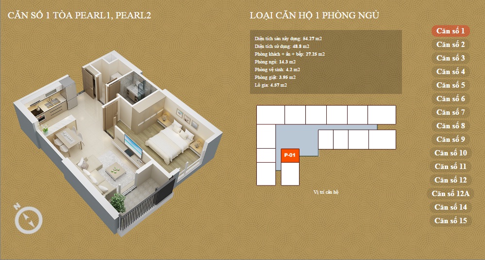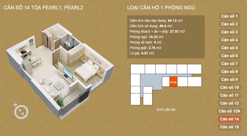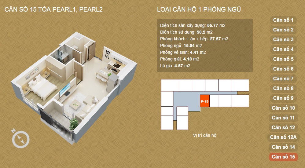 Mỗi mặt sàn được bố trí 15 căn hộ,