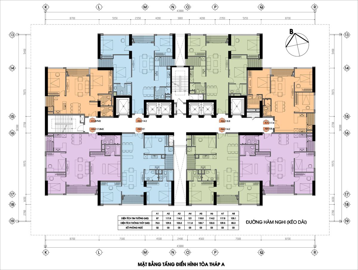 Khối văn phòng cho thuê 17 tầng nằm tại góc ngã tư, giáp giữa 2 khối nhà ở, trong đó: Tầng 1 có chiều cao 4,5m và diện tích 549m2, tầng 2 có chiều cao 4,5m và diện tích 470m2 bố trí khu vực lễ tân, nơi làm việc của quản lý tòa nhà.Từ tầng 3 đến tầng 17, mỗi tầng có chiều cao 3,3m, không gian văn phòng có diện tích 386m2.