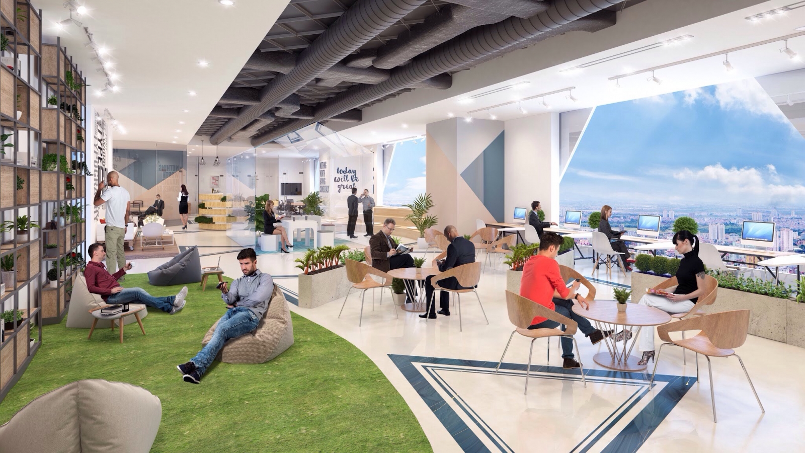 - 14 thang máy tốc độ cao và 4 thang bộ cho tầng cư dân.