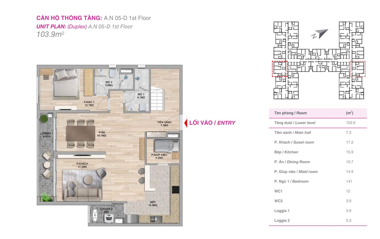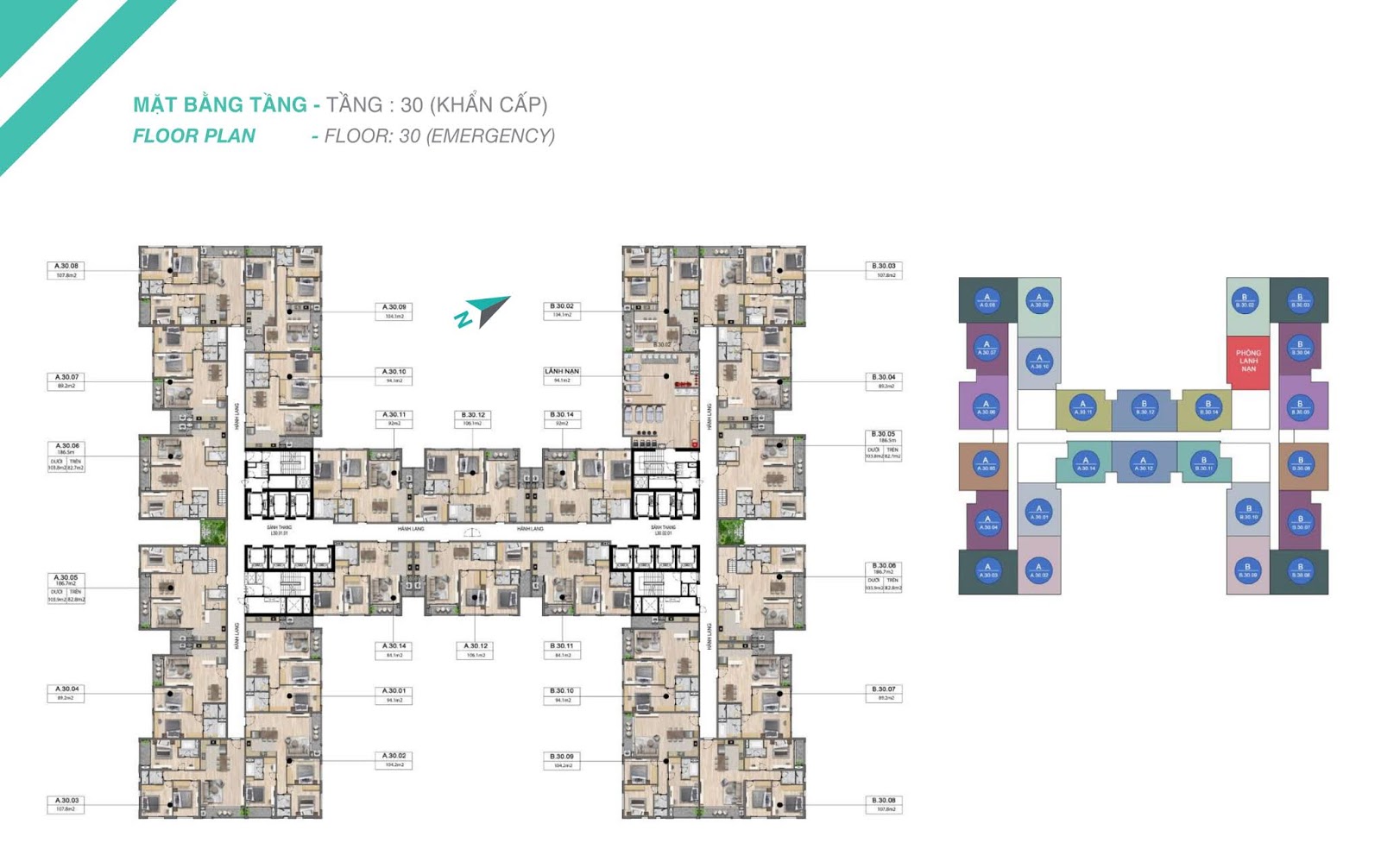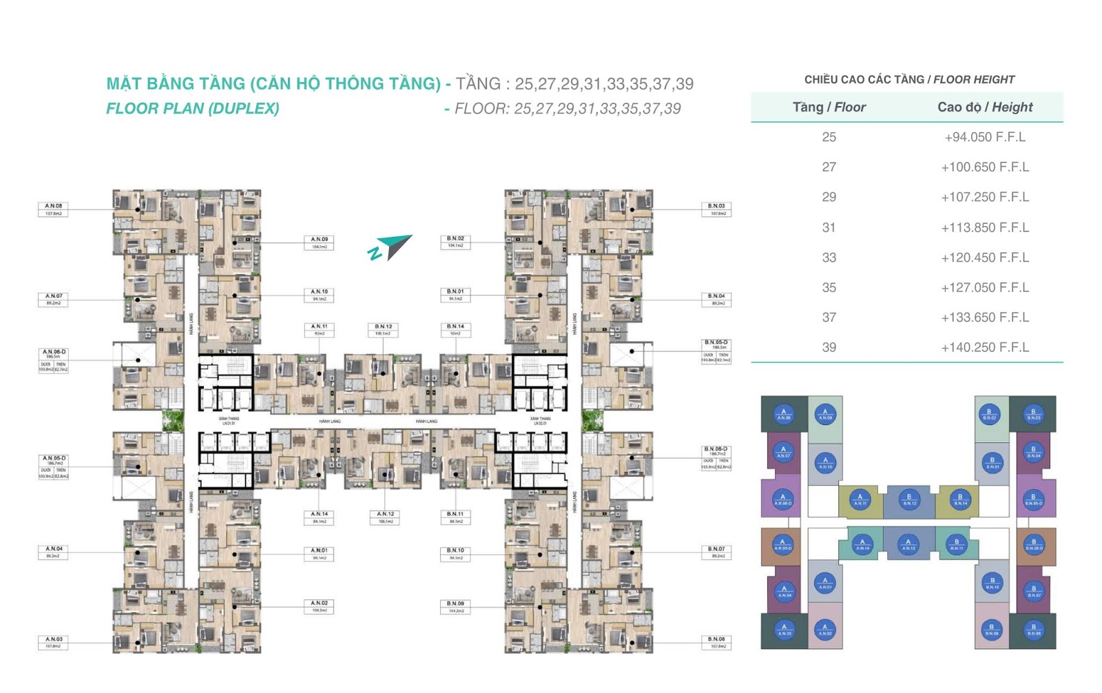 - 93 căn hộ Dual key (3 ngủ) : 104 – 105 m2 (thông thủy)