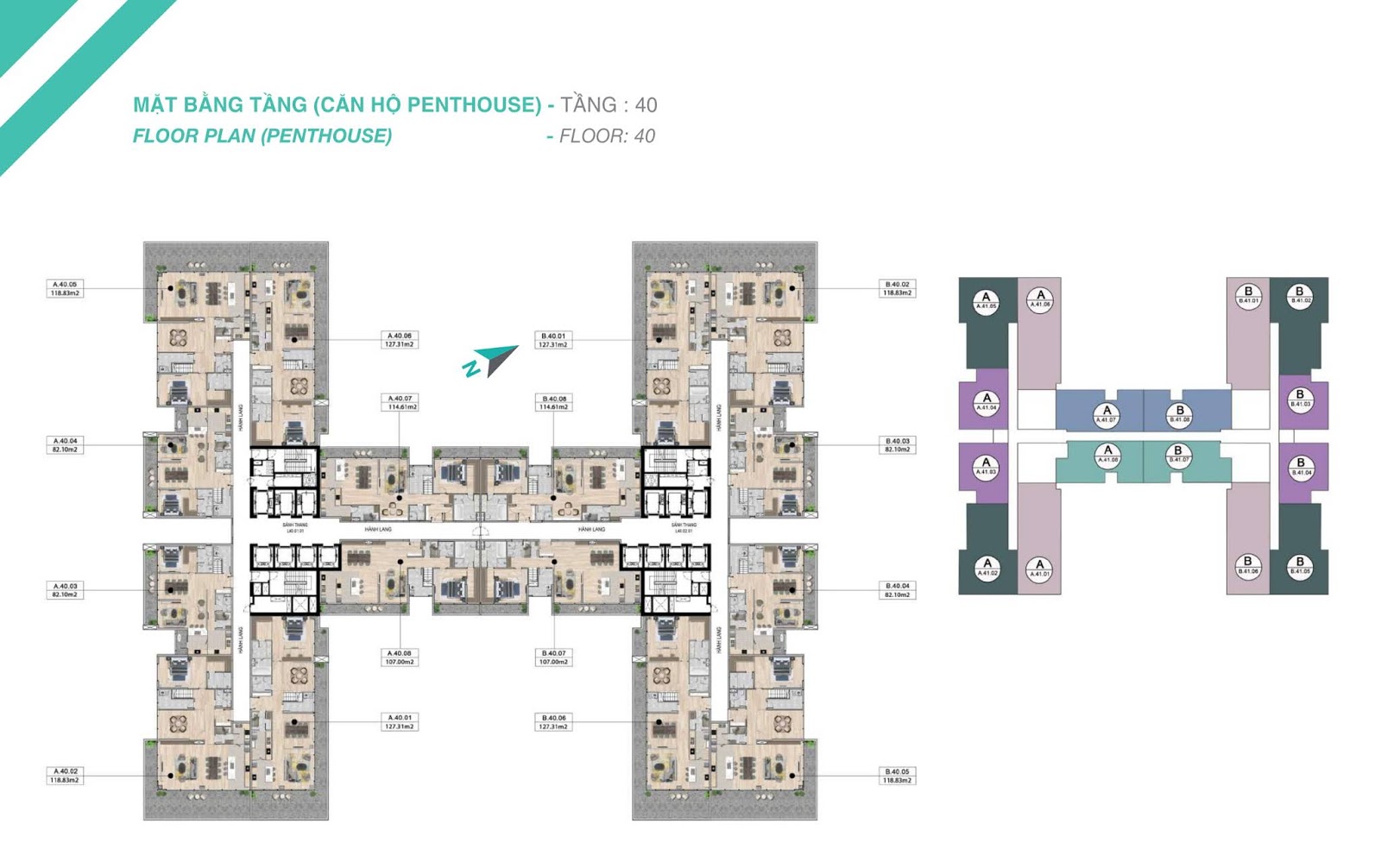 - 16 căn hộ Penhouse (4 ngủ): 188.2 – 322.9m2 (thông thủy)