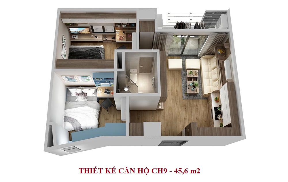 Tất cả đều là căn góc, sở hữu mặt bằng căn hộ vuông vắn, tối đa hóa công năng sử dụng và trên hết, 50% căn hộ có 2 đến 3 mặt thoáng với tầm view rộng mở. Hơn nữa, các căn hộ tại Chung cư Đại Kim Garden có thiết kế tối khi vừa có logia phơi đồ kín để giữ cảnh quan chung của cả tòa nhà lại vừa có ban công đáp ứng sở thích của khách hàng.
