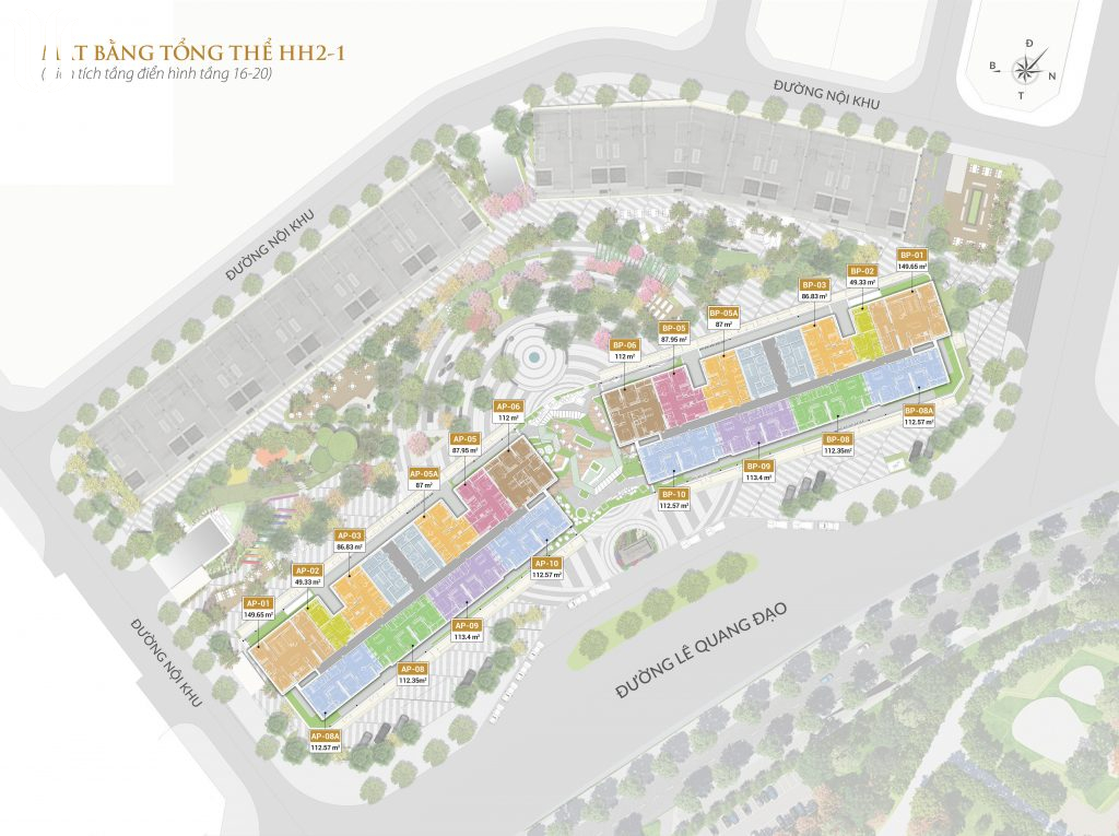 Quy mô: 3 toà cao 37 – 44 tầng, 3 tầng hầm