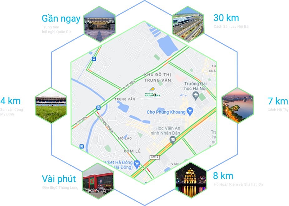 Tọa lạc tại 66 Trung Văn, Intracom Harmony Trung Văn thừa hưởng hạ tầng giao thông đồng bộ và hiện đại. Dự án có hai mặt tiếp giáp với các tuyến đường huyết mạch của khu vực gồm Trung Văn và đường quy hoạch nối ra Lê Văn Lương kéo dài. Từ dự án Intracom Trung Văn, cư dân có thể đi theo các trục đường từ Trung Văn rẽ ra Tố Hữu - Lê Văn Lương để đi vào nội đô; từ ngã tư Lê Văn Lương - Lương Thế Vinh đi ra trục Nguyễn Trãi. Ngoài ra, cũng có thể đi từ dự án tới láng - Hòa Lạc, Phạm Hùng, Mễ Trì...