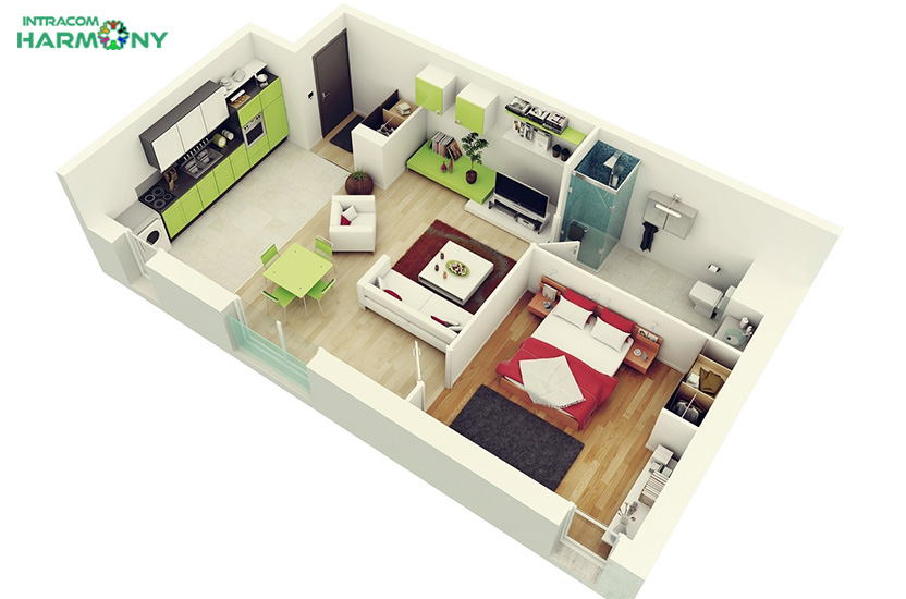 Với mong muốn mang đến cơ hội cho khách hàng được trải nghiệm cuộc sống hiện đại, tiện nghi bậc nhất, Intracom Harmony cung cấp đa dạng diện tích căn hộ chung cư từ 42,8m2 đến 80,2m2 đáp ứng nhu cầu căn hộ từ 01 phòng ngủ đến 03 phòng ngủ của quý khách hàng. Đây cũng là một trong sốt ít dự án chung cư cao cấp sở hữu diện tích căn hộ nhỏ, tạo điều kiện lý tưởng cho quý khách hàng sở hữu và trải nghiệm dịch vụ sống đẳng cấp tại đây.