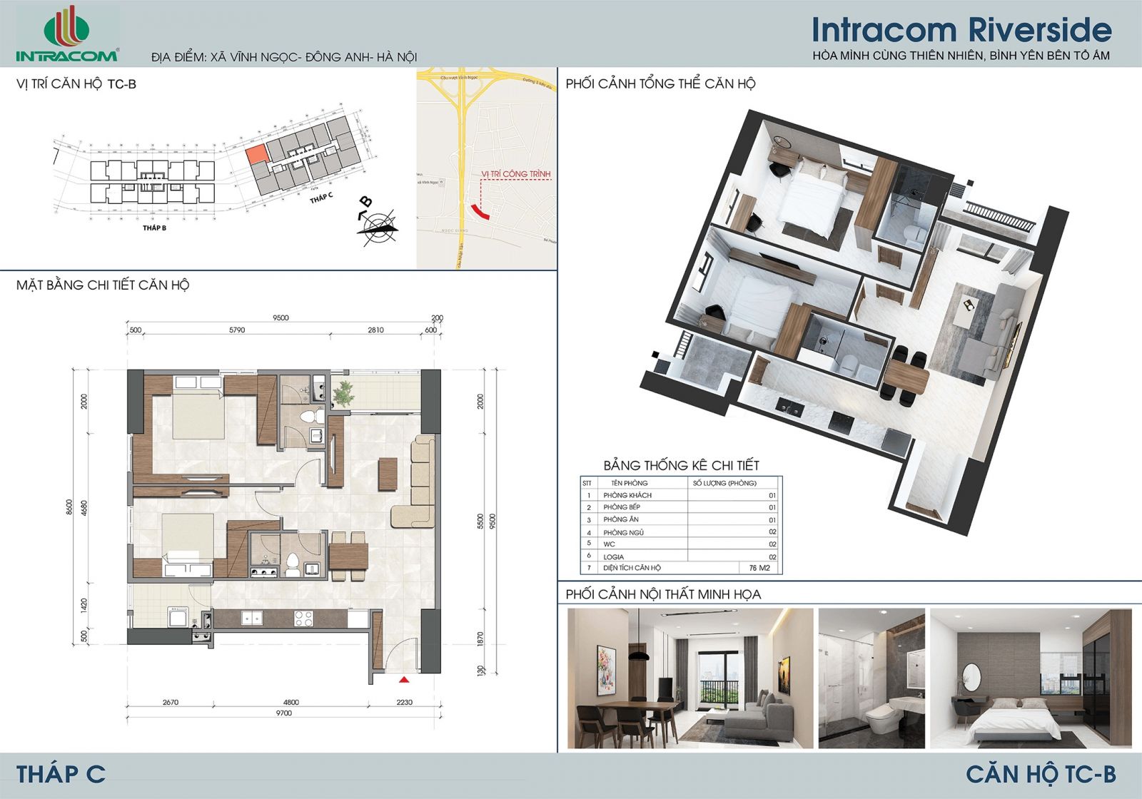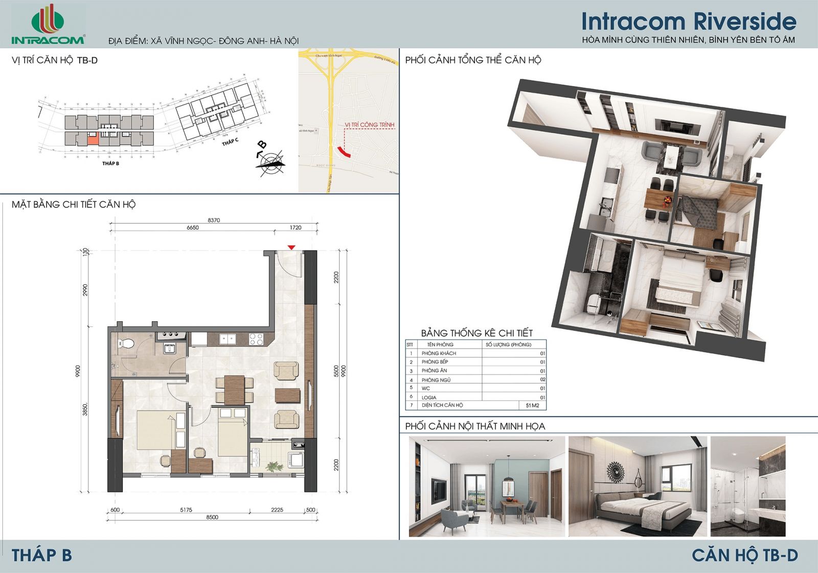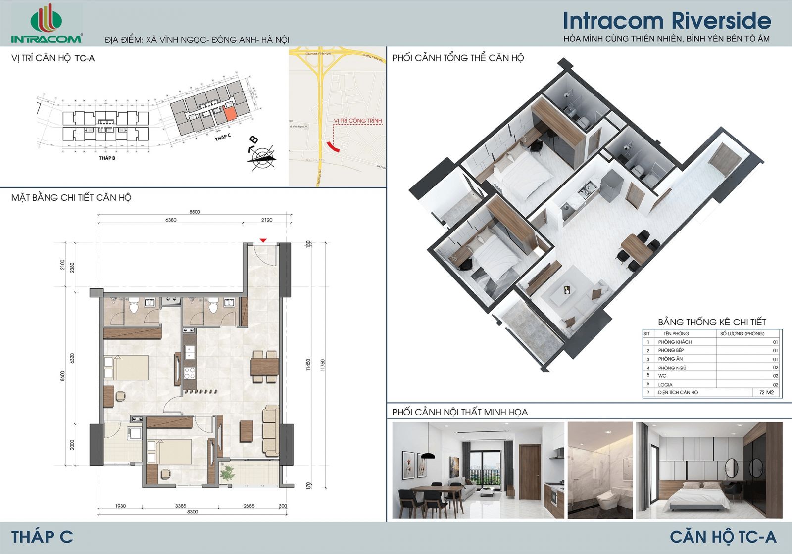 Dự án Intracom Riverside là tổ hợp chung cư, văn phòng, trung tâm thương mại và dịch vụ, tọa lạc tại Vĩnh Ngọc , Đông Anh, Hà Nội, bên bờ bắc cầu Nhật Tân. Nằm ngay tại nút giao giữa Đại Lộ Võ Nguyên Giáp và đường đi sân bay quốc tế Nội Bài. Intracom 8 Vĩnh Ngọc tọa lạc tại phía Bắc cầu Nhật Tân, điểm đầu tuyến đường Võ Nguyên Giáp – cửa ngõ phía Bắc từ sân bay Quốc tế Nội Bài về Trung tâm Thủ đô Hà Nội và phía Đông khu vực Trung tâm tài chính, ngân hàng, thương mại dịch vụ quốc tế, hội chợ thương mại Đông Anh – Trung tâm Phương Trạch.