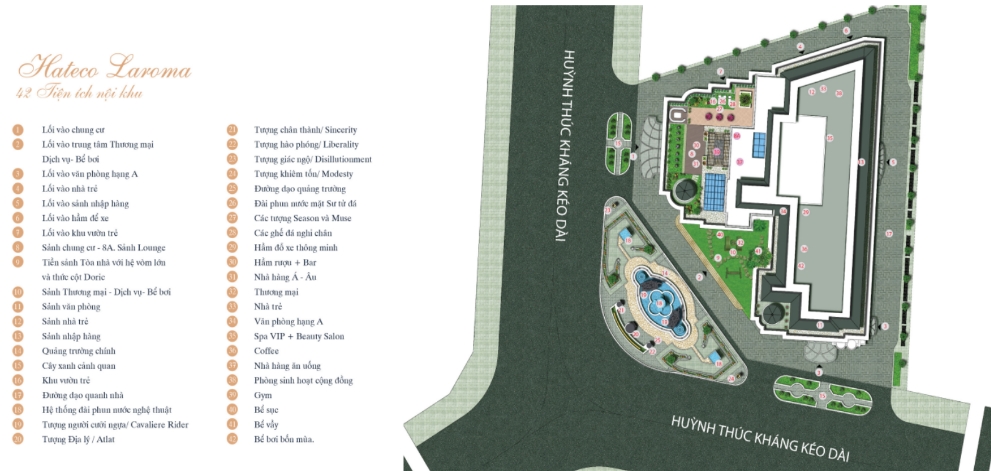 Sở hữu được một vị trí đẹp, ngay mặt đường tiếp giáp với tuyến đường Huỳnh Thúc Kháng - thuộc quận Đống Đa. Nơi đây tập trung của nhiều tuyến đường huyết mạch của Thủ đô Hà Nội như: Láng Hạ, Nguyễn Chí Thanh, Lê Văn Lương kéo dài, Láng,... rất thuận lợi trong việc giao lưu giữa các khu vực. Hơn nữa, Chung cư Hateco La Roma còn nằm trong khu vực hạ tầng phát triển đống bộ được thừa hưởng nhiều tiện ích hiện đại sẵn có từ các dự án khác như: công viên cây xanh, trung tâm thương mại, rạp chiếu phim quốc gia, trường học, bệnh viện, chợ.