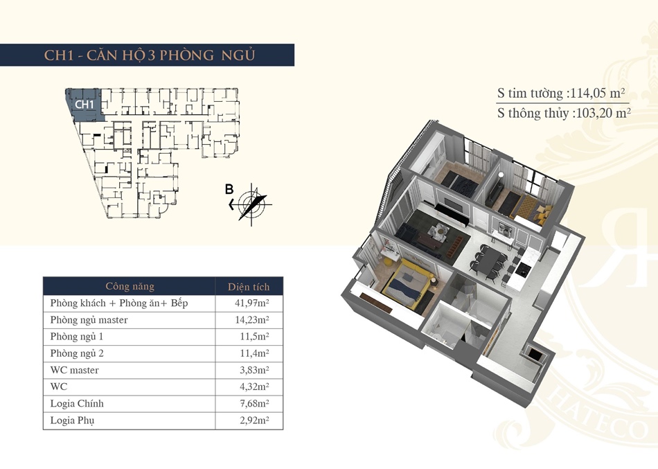 Chung cư Hateco La Roma được thiết kế 12 căn hộ trên 1 mặt sàn. Các căn hộ Hateco La Roma có diện tích linh hoạt từ 81 – 138m2, bố trí 2 – 4 phòng ngủ, phù hợp với cả gia đình trẻ và gia đình đa thế hệ. Thiết kế khoa học, tối ưu hóa công năng và diện tích sử dụng tạo ra không gian mở thoáng đãng cho mỗi căn hộ, giúp ôm trọn thiên nhiên xanh ngút ngàn trong tầm mắt bạn.
