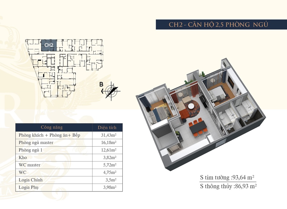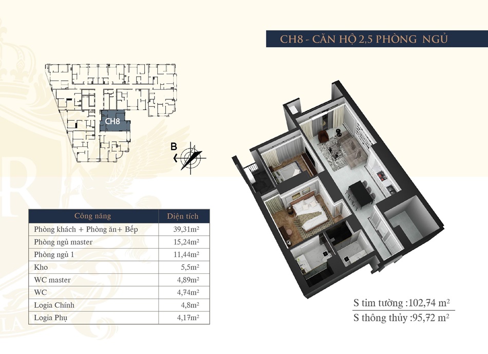 - Tầng 6 -39: Khối căn hộ ở được thiết kế với diện tích từ 62.8m2 - 128m2.