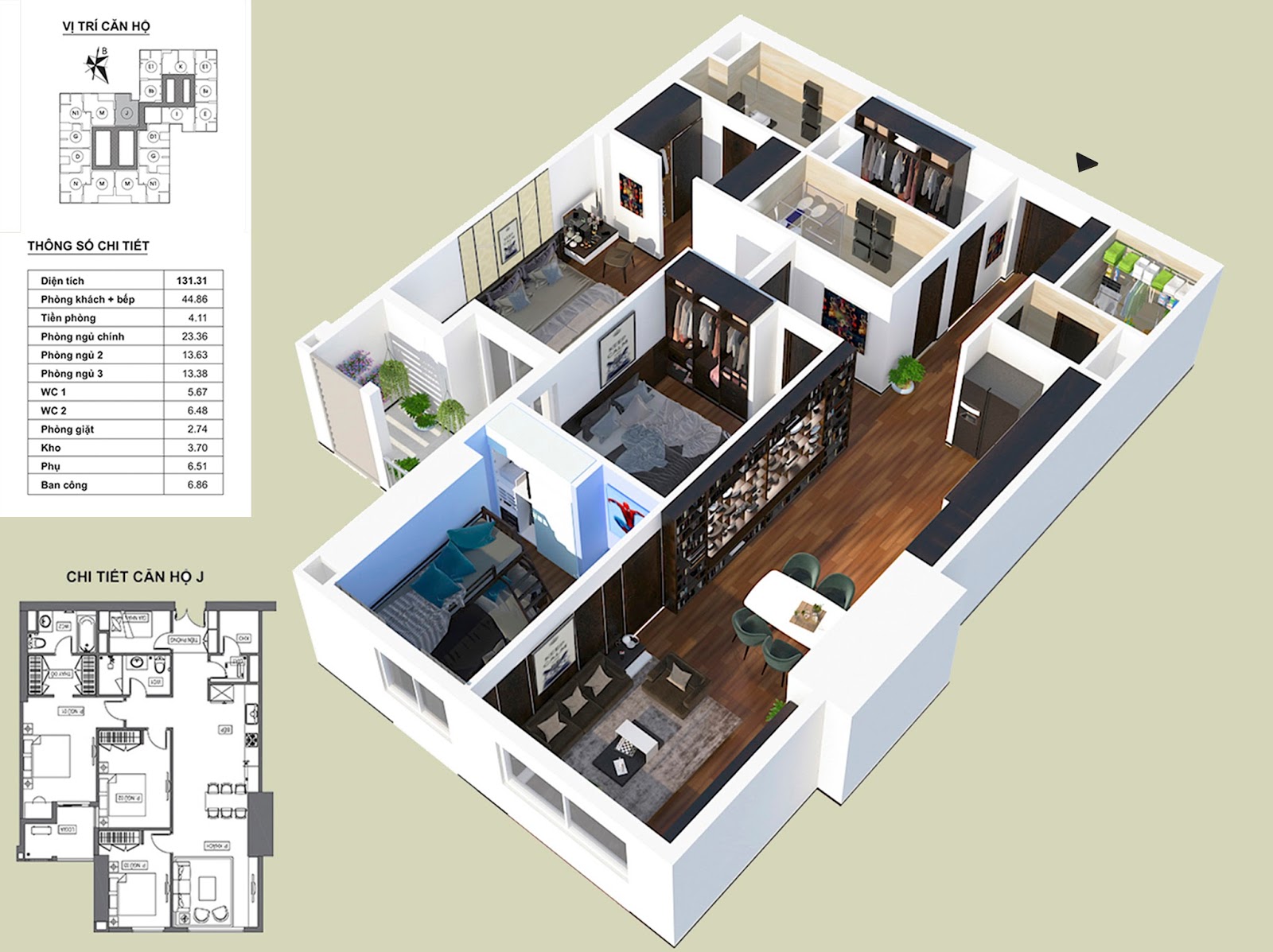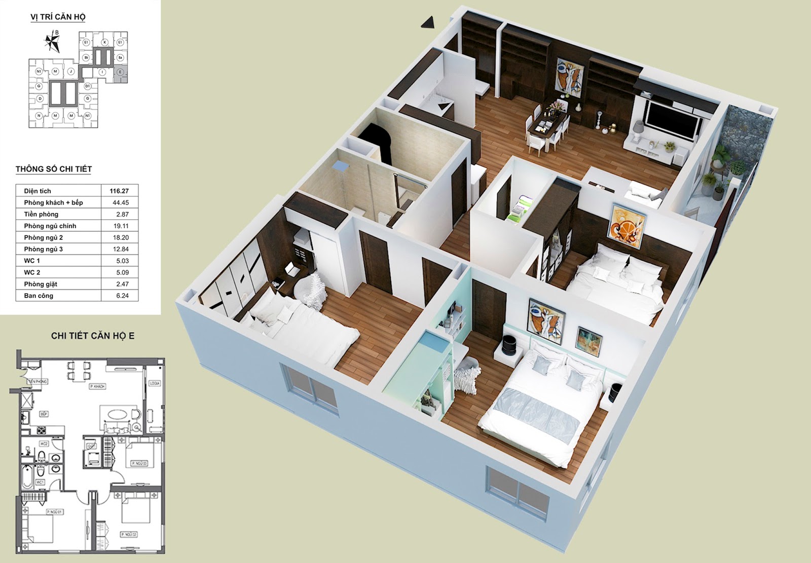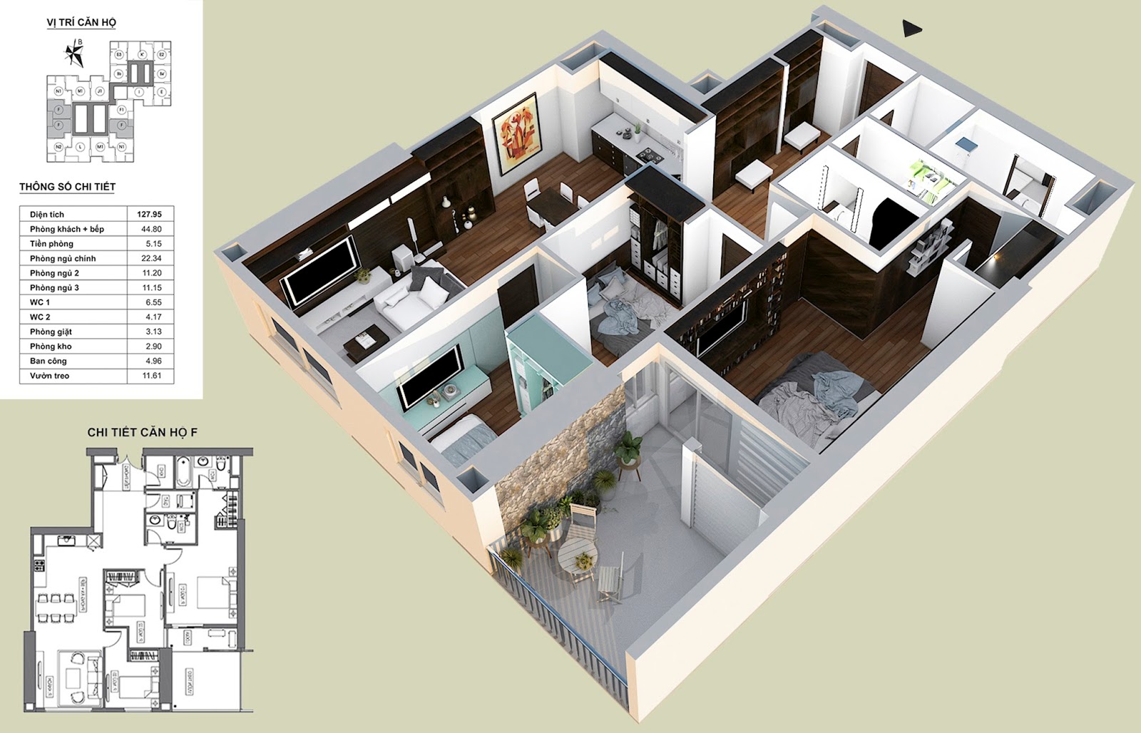 Với diện tích đa dạng từ 82,15m2 - 168,01m2 cùng thiết kế 2PN, 3PN, tối đa hóa công năng sử dụng với nhiều không gian độc đáo như : vườn treo, phòng gia nhân, phòng giặt, kho… dự án mang tới nhiều sự lựa chọn, đáp ứng nhu cầu khác nhau của khách hàng. Đặc biệt, các căn hộ có sân vườn là điểm nhấn thu hút sự quan tâm của nhiều đối tượng, nhất là đối với khách hàng muốn sở hữu căn hộ cao cấp có sân vườn riêng biệt.