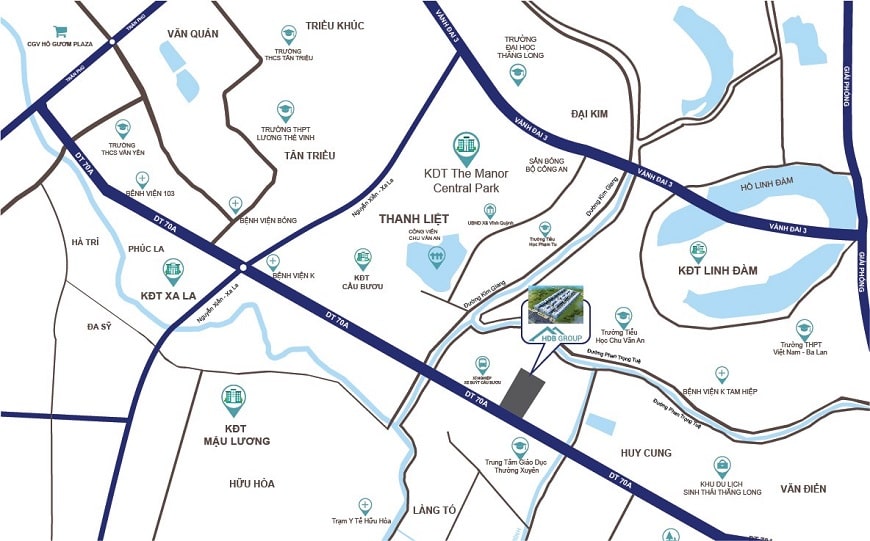 HDB Plaza nằm trên tuyến đường được xem là trung tâm thương mại và dịch vụ của huyện Thanh Trì, là cầu nối giao thông giữa thành phố Hà Đông với tuyến đường thuộc Quốc lộ 1A cũ, HDB Plaza có vị trí vô cùng thuận lợi, dễ dàng kết nối với các vùng lân cận thông qua nhiều tuyến đường được quy hoạch mở rộng.