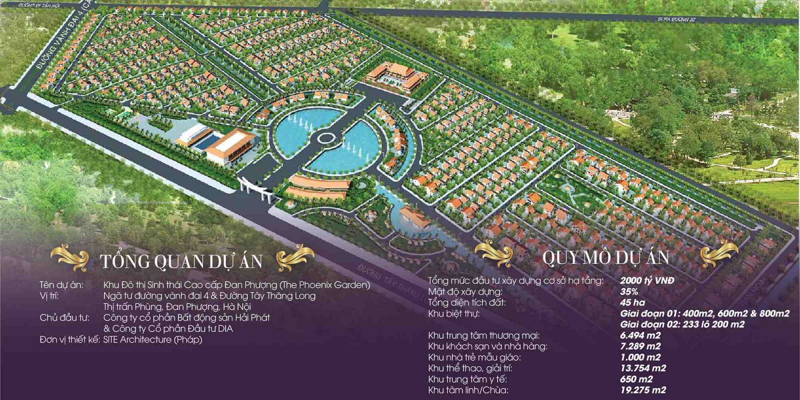 Khu đô thị The Phoenix Garden là dự án được hợp tác đầu tư giữa liên danh chủ đầu tư Hải Phát Land – Công ty TNHH An Quý Hưng và Công ty Cổ phần Đầu tư DIA. Dự án nằm ở trung tâm huyện Đan Phượng và chỉ mất 20 phút để di chuyển đến trung tâm Hà Nội bằng các tuyến đường huyết mạch như Quốc lộ 32, đường Tây Thăng Long, đường Vành đai 4…