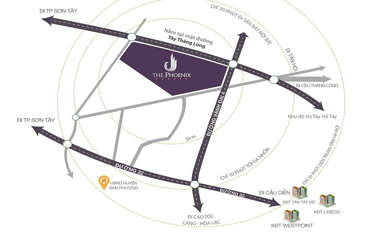 Đây là dự án biệt thự sinh thái có khoảng cách tới trung tâm Hà Nội gần nhất. Từ The Phoenix Garden xuôi theo mạch giao thông dễ dàng kết nối tới các quận Từ Liêm, Cầu Giấy, Tây Hồ,…