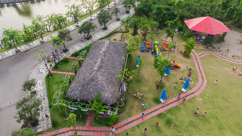 Khu giải trí câu cá, ca nhạc, vui chơi trẻ em được bố trí xen kẽ với công viên cây xanh và hồ nước. Khu nhà trẻ mẫu giáo với diện tích 1.000 m2 nằm trên khu đất riêng biệt giữa công viên và vườn hoa.