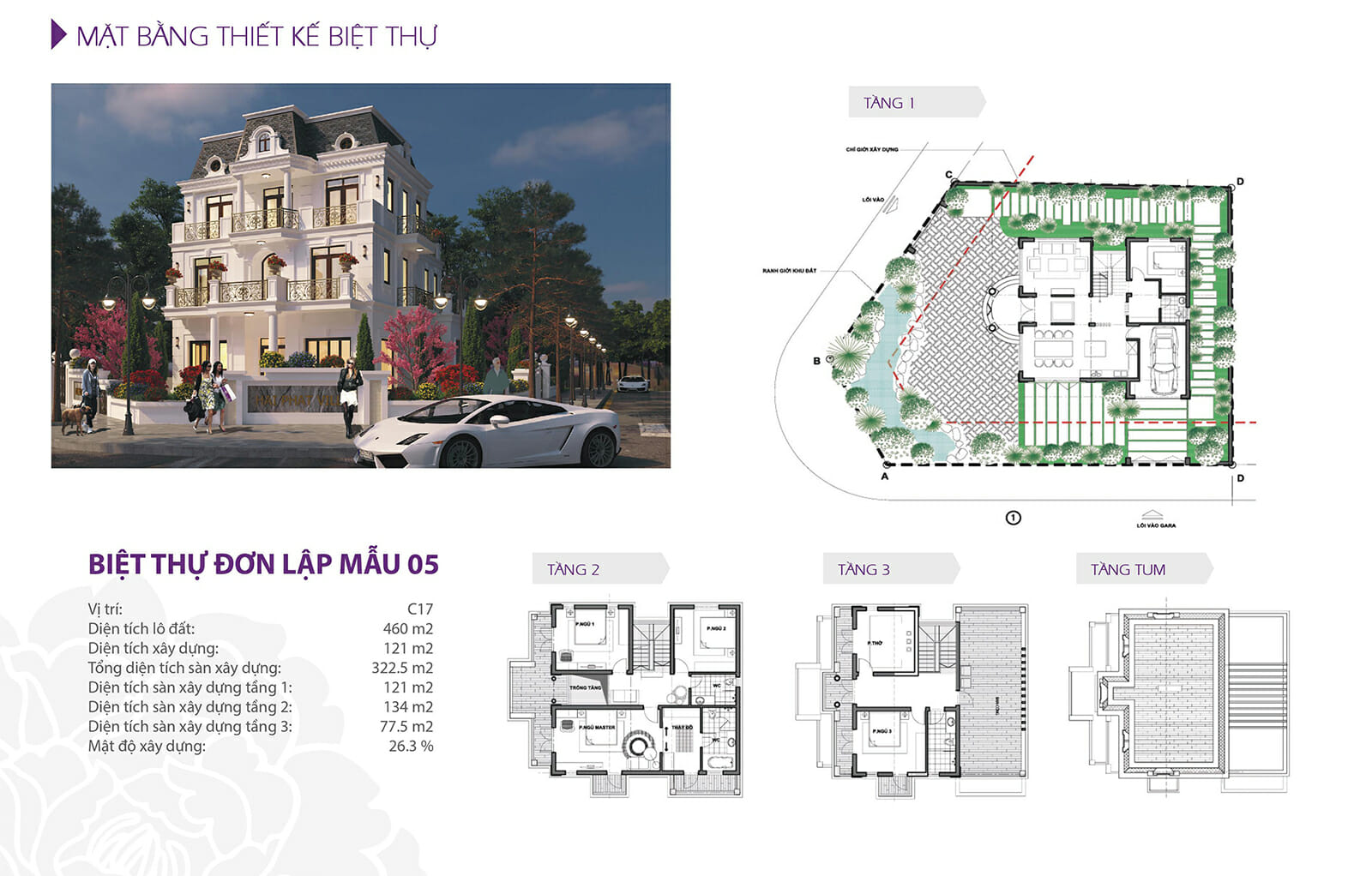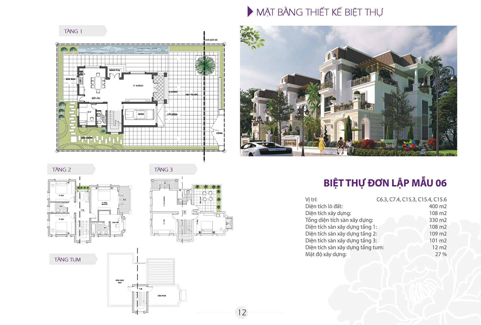 THIẾT KẾ  BIỆT THỰ ĐƠN LẬP CĂN 400 M2.