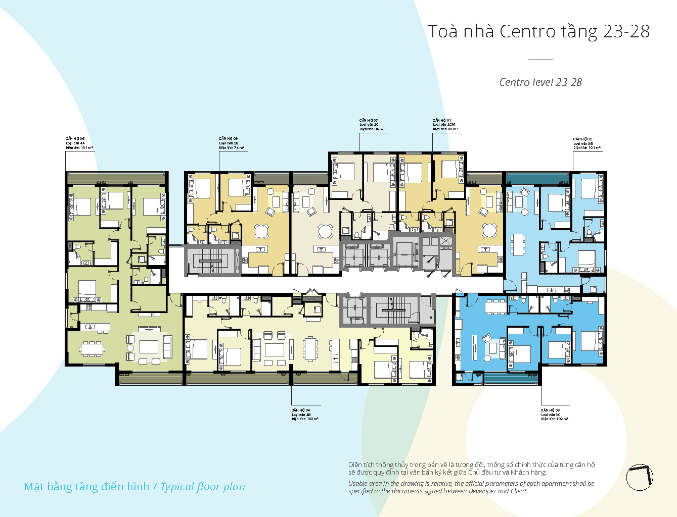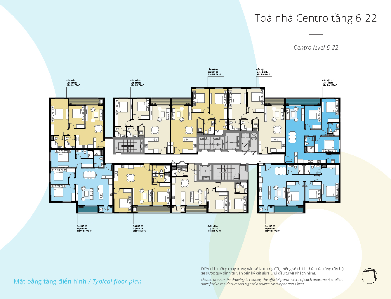 Mật độ xây dựng: khối đế khoảng 43%, khối tháp khoảng 30%