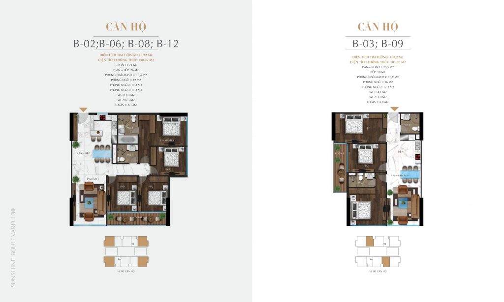 Lấy cảm hứng từ phong cách lịch lãm, trang nhã thân thiện với môi trường tự nhiên, các căn hộ tại Dự án Sunshine Boulevard đều được bố trí hợp lý, tối ưu công năng sử dụng mang lại phong cách sống tiện nghi và thời thượng cho gia chủ. Các căn hộ Sunshine Boulevard được thiết kế diện tích linh hoạt, bố trí 2 – 3 phòng ngủ đáp được nhu cầu đa dạng của khách hàng.