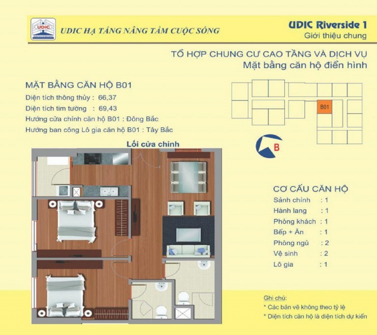 Lấy cảm hứng từ phong cách lịch lãm, trang nhã thân thiện với môi trường tự nhiên, các căn hộ tại Udic Riverside đều được bố trí hợp lý, tối ưu công năng sử dụng mang lại phong cách sống tiện nghi và thời thượng cho gia chủ. Các căn hộ Udic Riverside được thiết kế diện tích linh hoạt, bố trí 2 – 3 phòng ngủ đáp được nhu cầu đa dạng của khách hàng.
