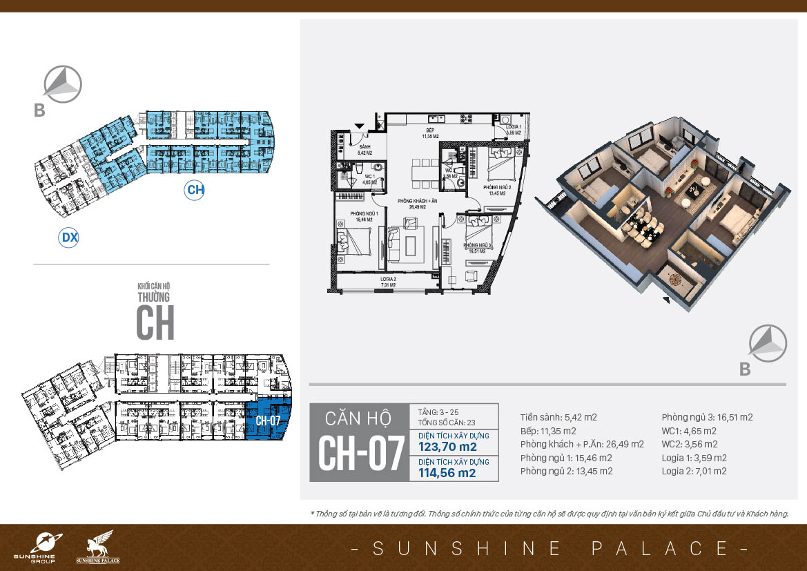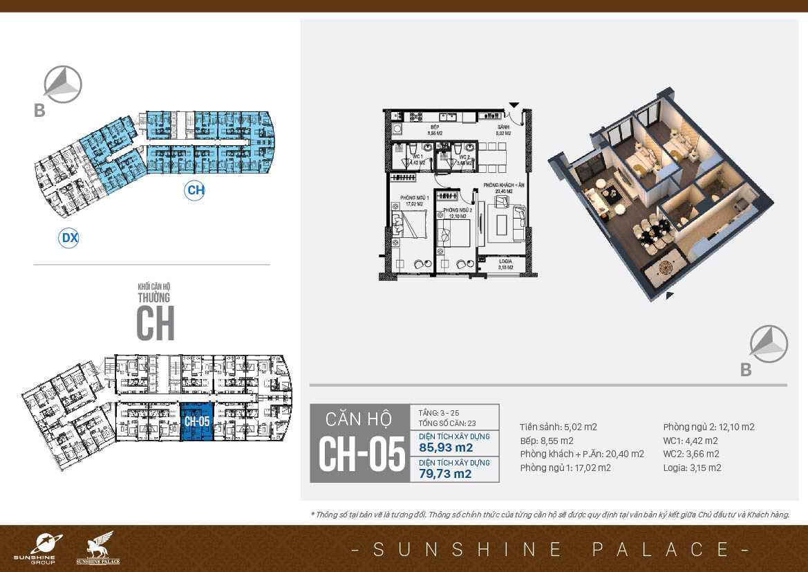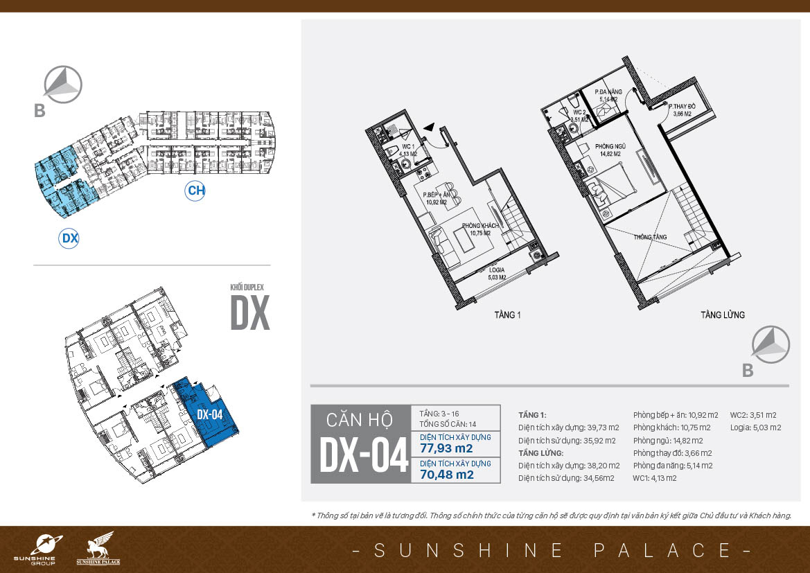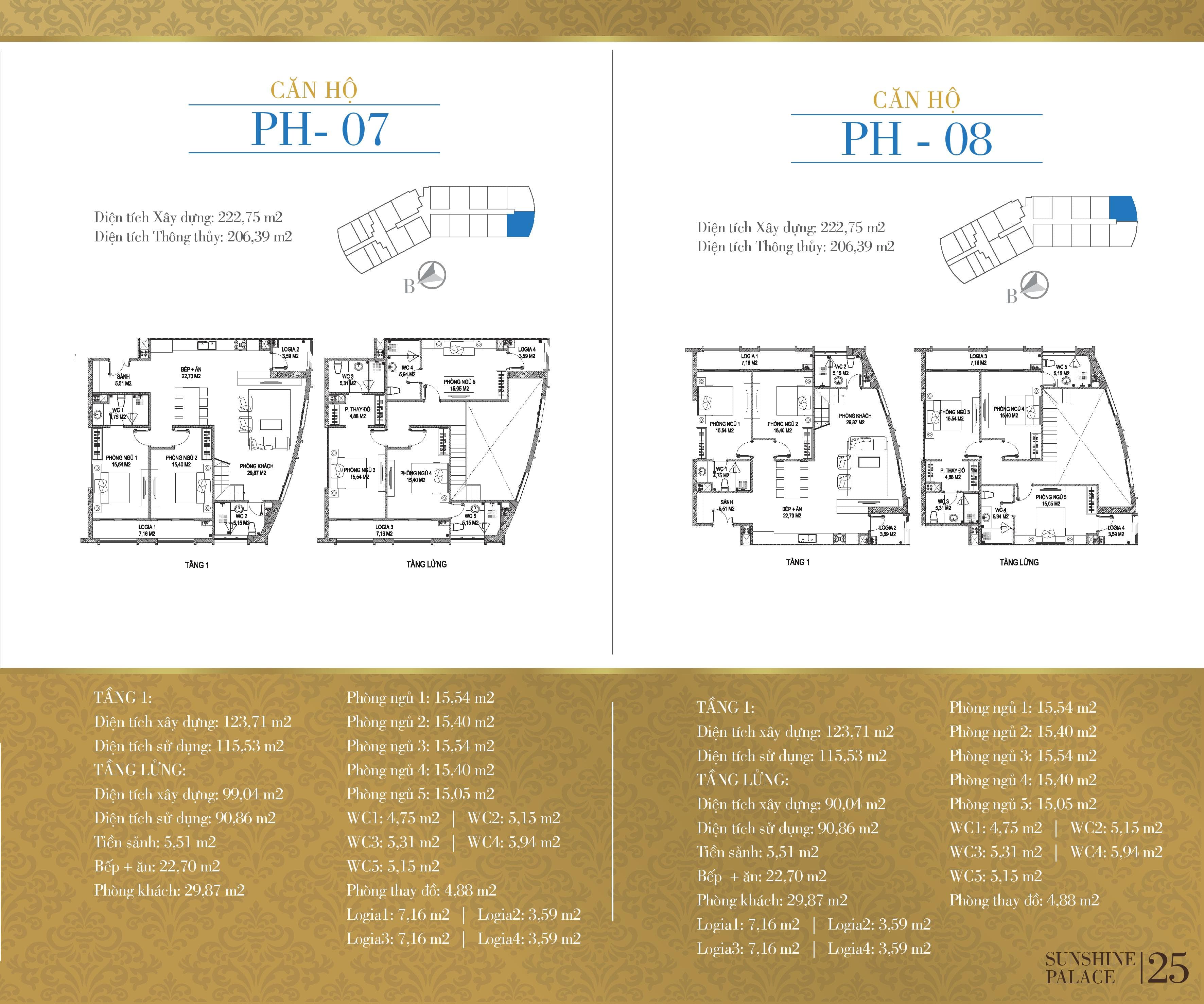 Các căn hộ của Sunshine Palace được thiết kế thông minh, mang tính hữu dụng cao với 3 loại hình căn hộ: Duplex, căn hộ thuần túy và căn hộ Penthouse, có diện tích linh hoạt từ 60m2 đến hơn 200m2, được thiết kế tối ưu công năng sử dụng, hoàn mỹ trong bố trí nội thất và hình thức kiến trúc. Tất cả các phòng chức năng trong căn hộ đều được tiếp xúc trực tiếp với Gió trời và Ánh sáng tự nhiên nhờ có hệ thống cửa sổ rộng rãi và khoảng mở lô gia lấy sáng lớn. Sự lưu thông không khí, yếu tố phong thủy quan trọng bậc nhất của một không gian sinh tồn đã được cân nhắc và tính toán tỉ mỉ, nhằm đem đến cho khách hàng một trải nghiệm sống trong lành và tràn đầy sinh khí.