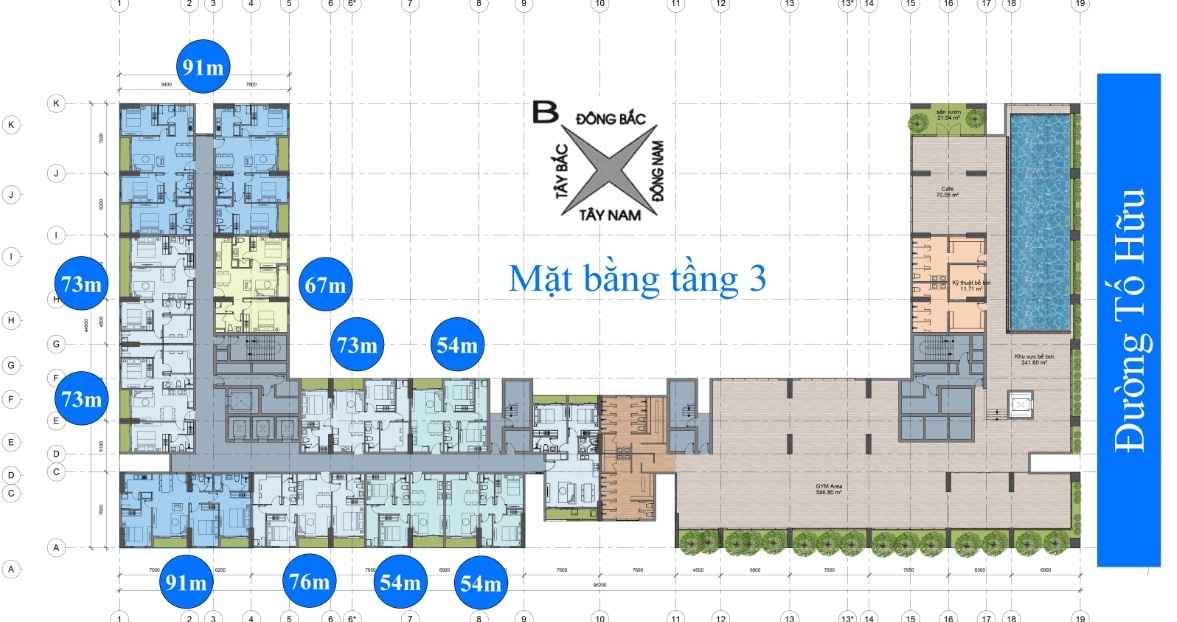 - Phía Đông Nam: Nhìn ra đường Tố Hữu và Trung tâm Quận Hà Đông.