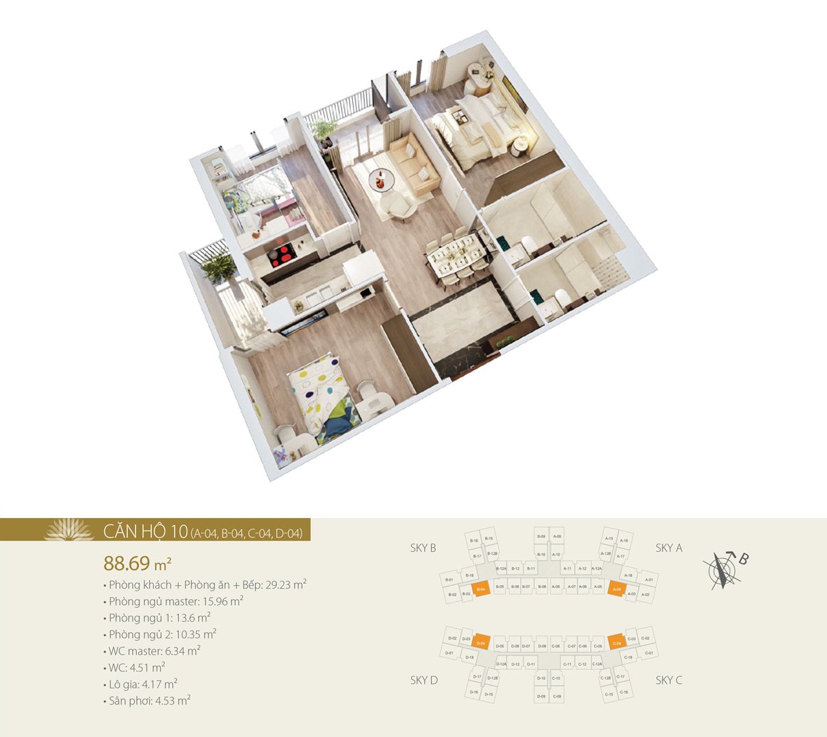 Tổng số căn hộ: 1866 căn hộ/ 4 tháp